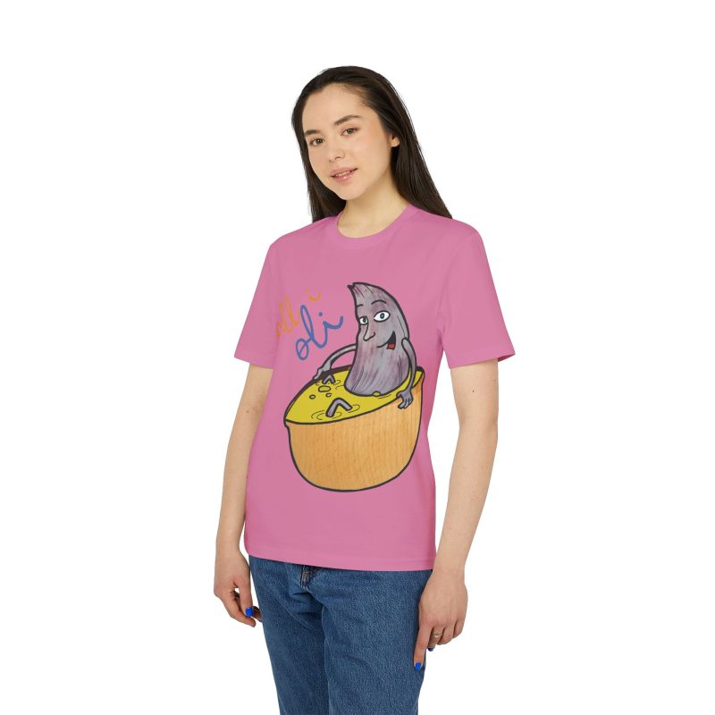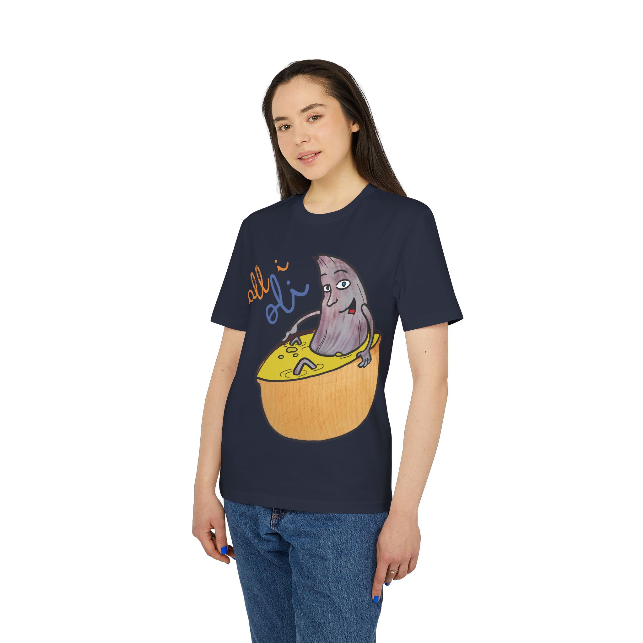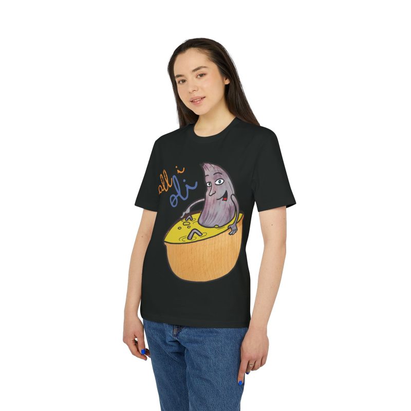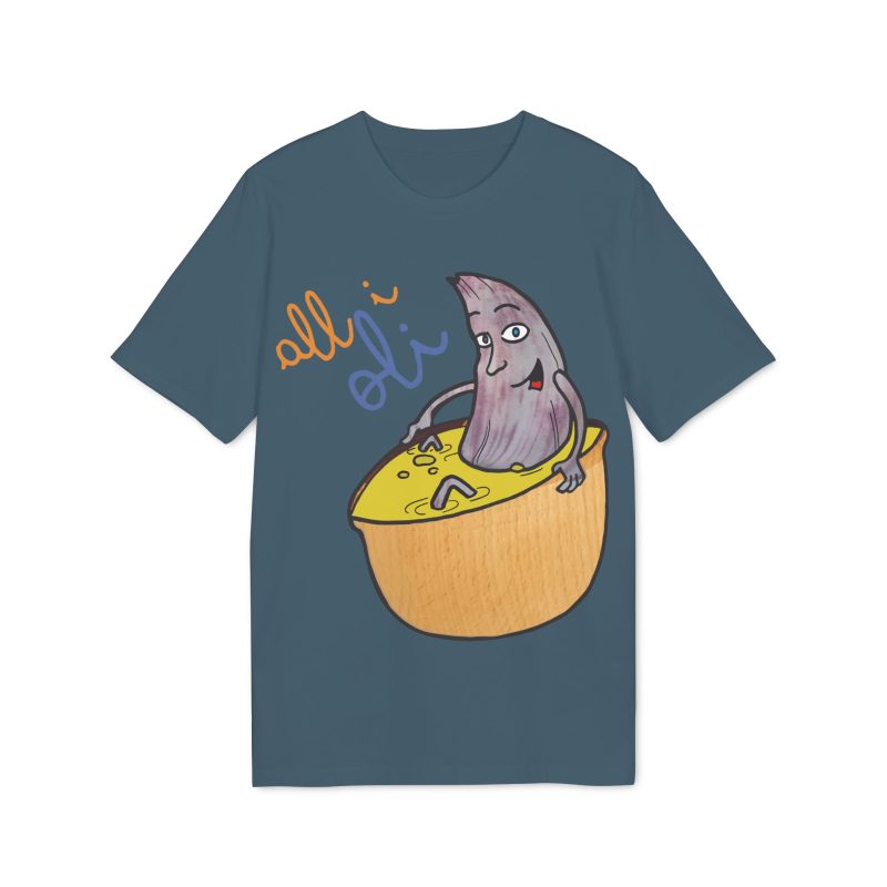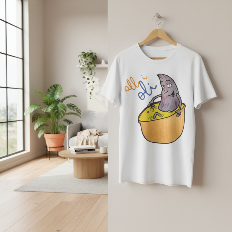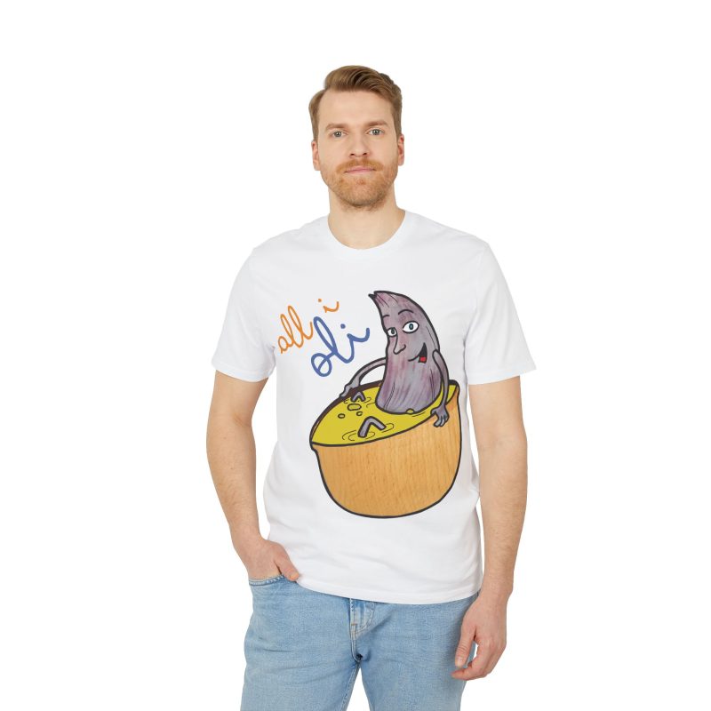 ¡Hola, comodidad con estilo! Esta Camiseta Creador 2.0 – All i Oli es tu nuevo básico favorito. Con su suave algodón orgánico, es como un abrazo ligero que te acompaña todo el día. El dibujo a mano de nuestra oliva relajándose en su bañera de salsa mostaza es tan adorablemente raro que no podrás evitar sonreír. Perfecta para un paseo, una tarde en casa o para ponerte creativo en la cocina.
