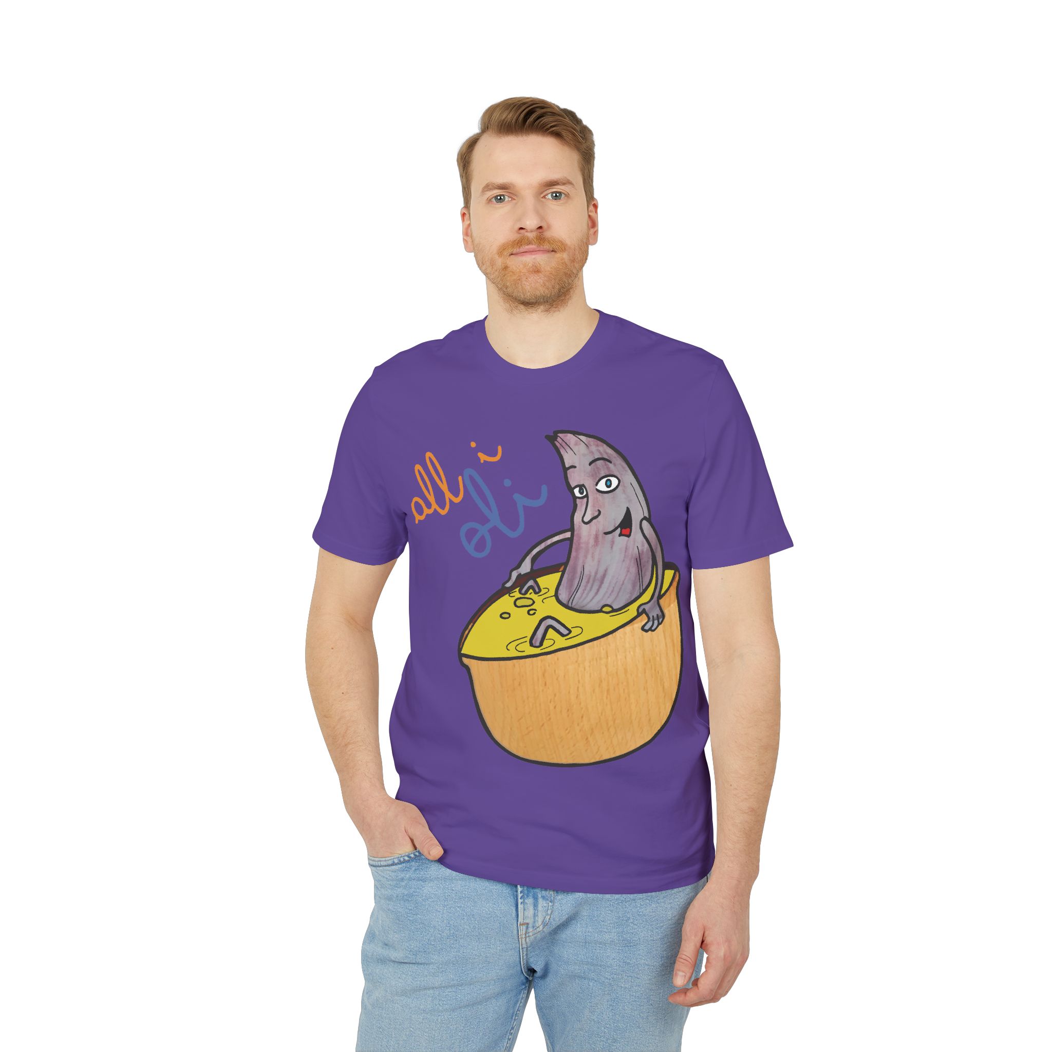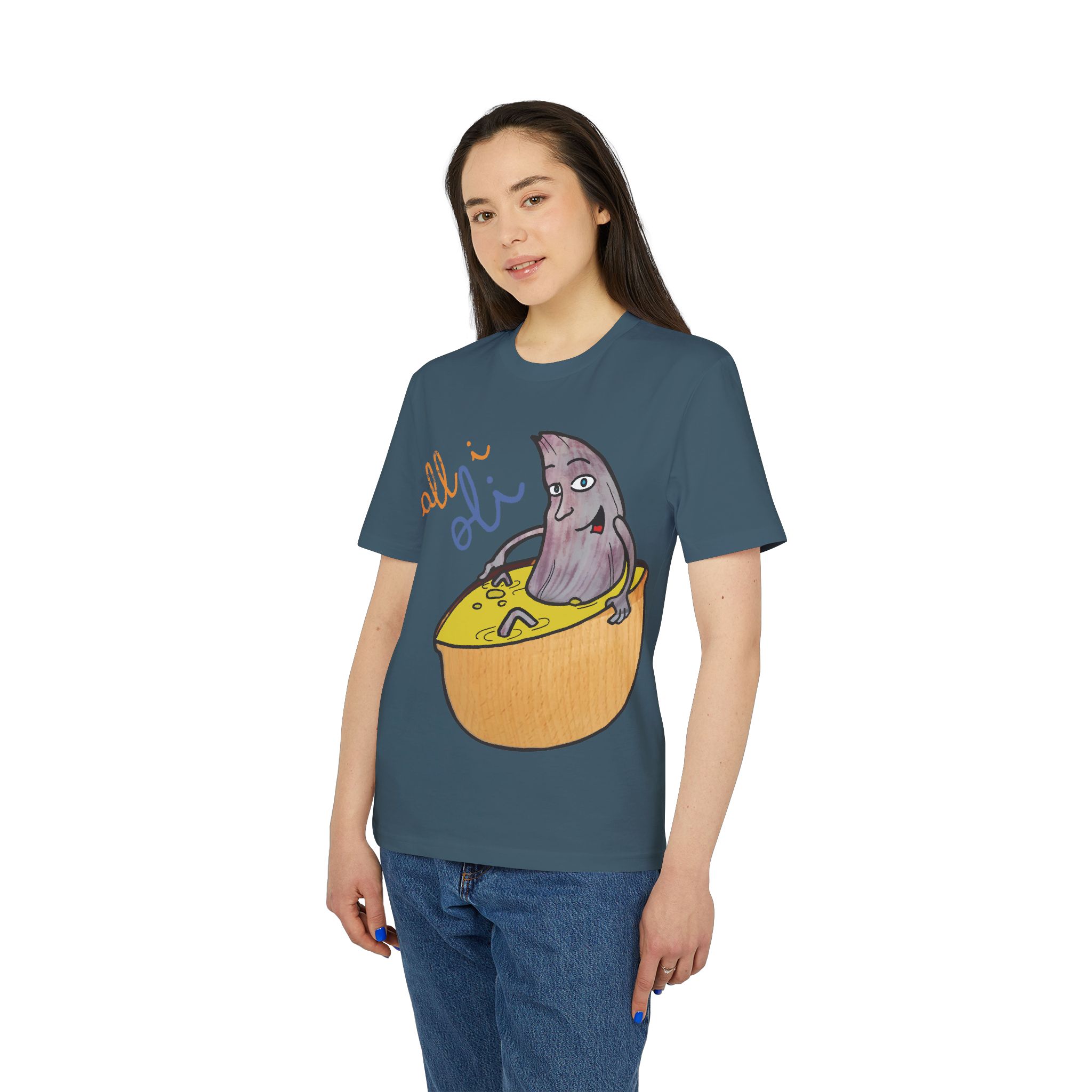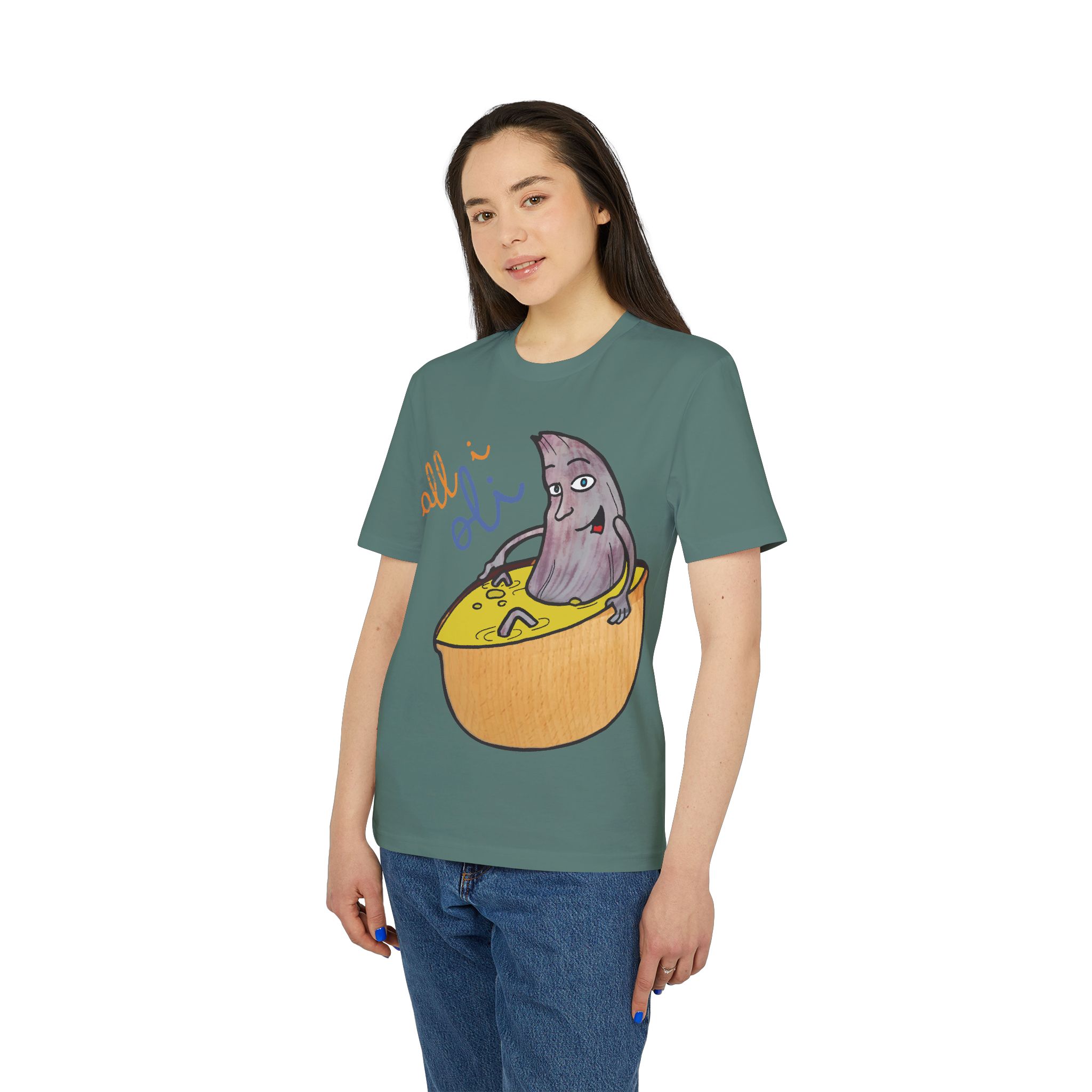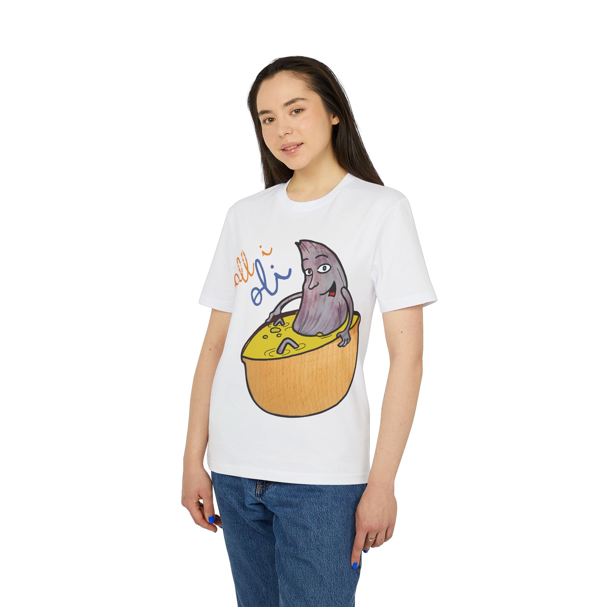 ¡Hola, comodidad con estilo! Esta Camiseta Creador 2.0 – All i Oli es tu nuevo básico favorito. Con su suave algodón orgánico, es como un abrazo ligero que te acompaña todo el día. El dibujo a mano de nuestra oliva relajándose en su bañera de salsa mostaza es tan adorablemente raro que no podrás evitar sonreír. Perfecta para un paseo, una tarde en casa o para ponerte creativo en la cocina.