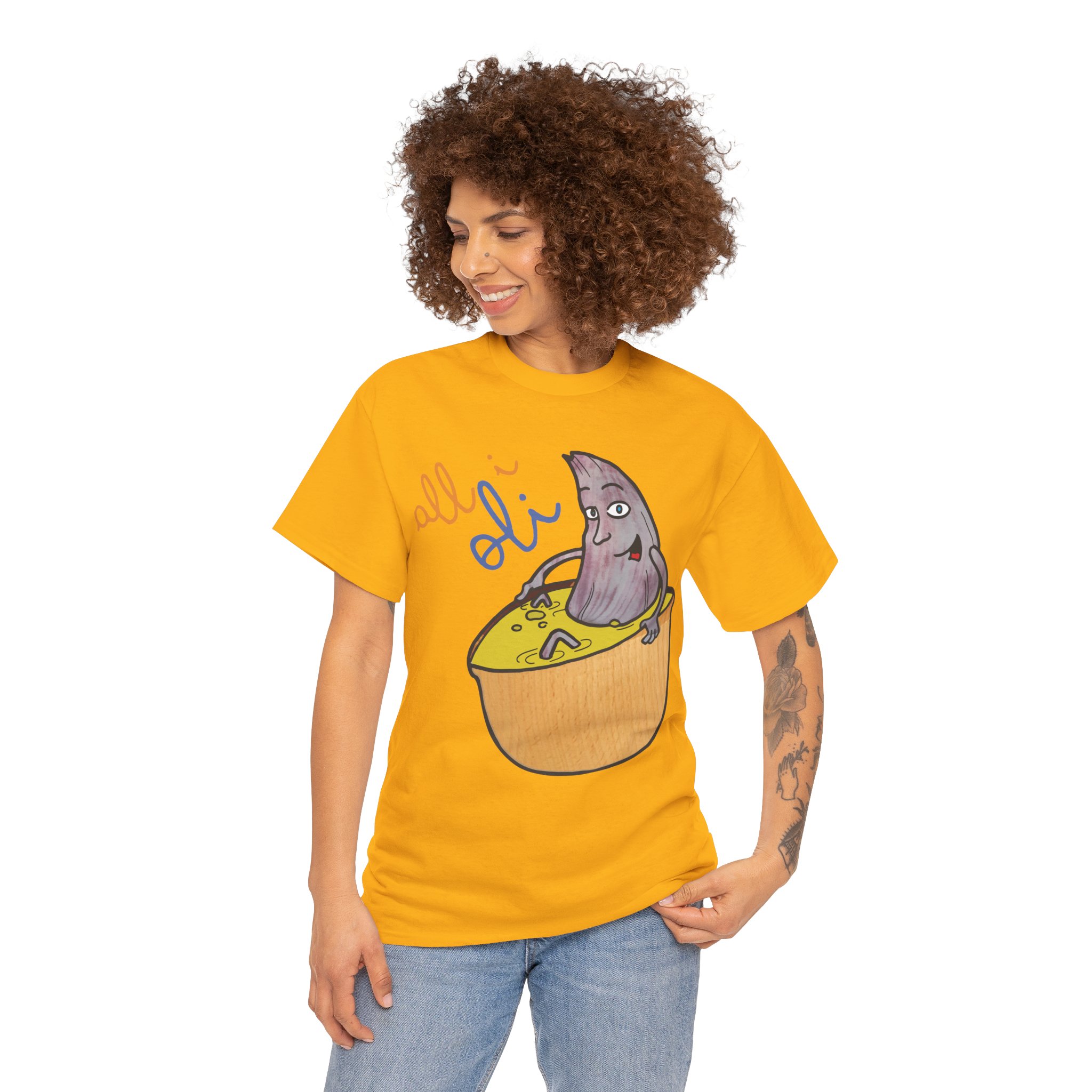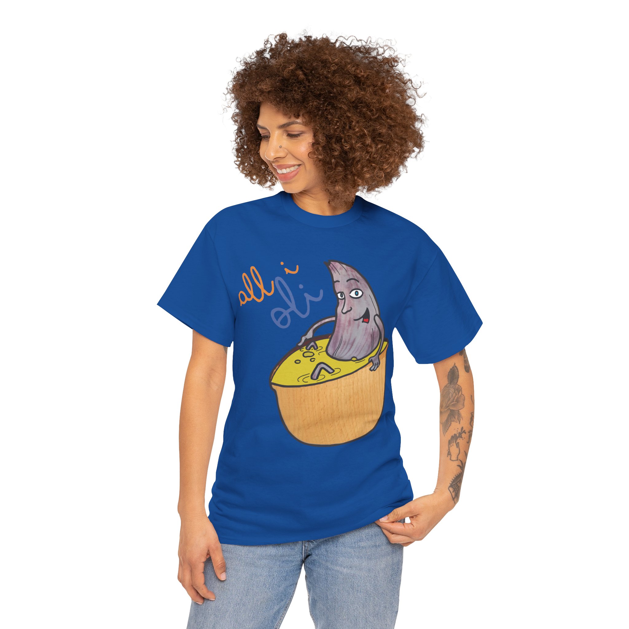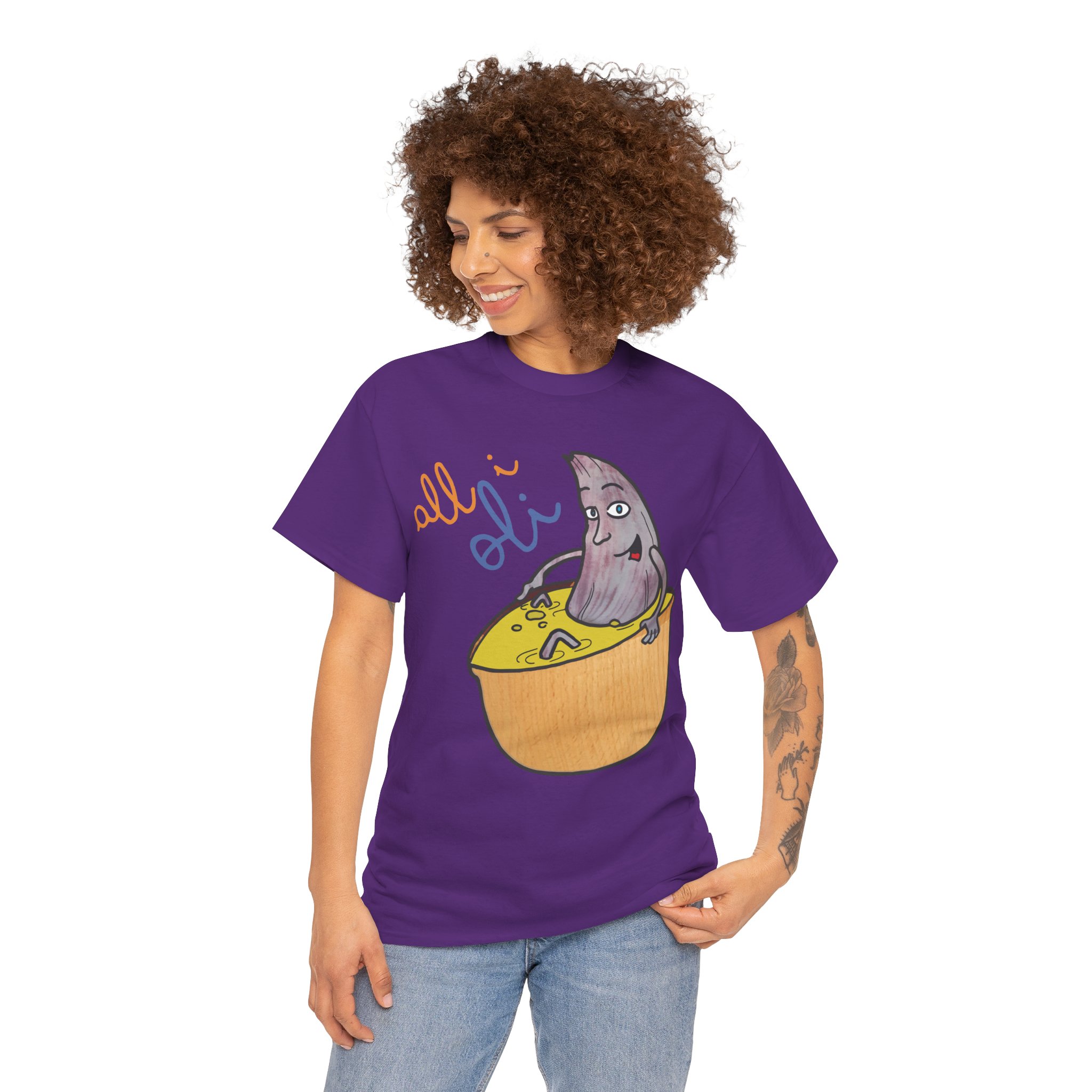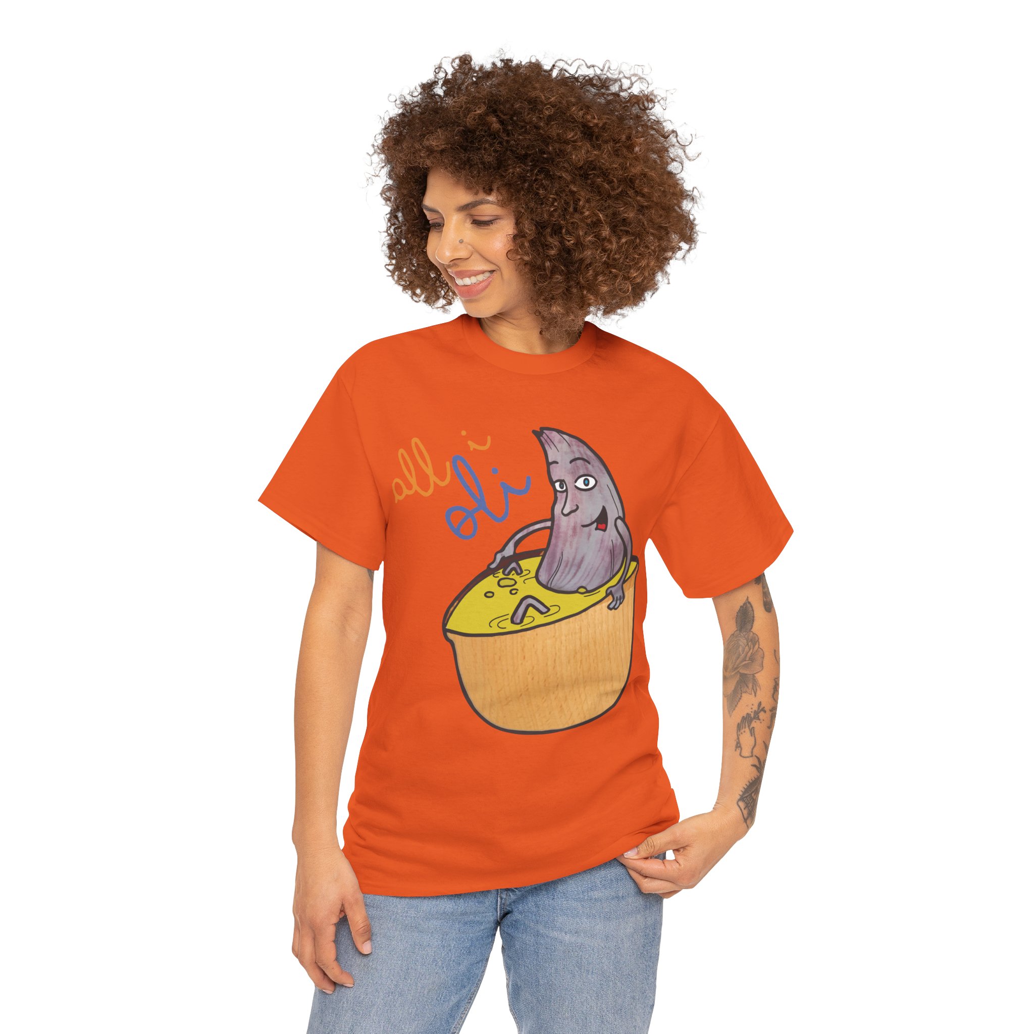 ¿Cansado de las camisetas aburridas? La Camiseta Unisex All i Oli llega para alegrar tu armario con su diseño único y juguetón. Imagina a un pequeño personaje púrpura relajándose dentro de un cítrico brillante, con el texto “all i oli” que añade un toque de misterio y diversión. Fabricada en suave algodón 100%, esta camiseta de corte clásico te ofrece una comodidad increíble para el día a día. Es ligera, transpirable y perfecta para esas ocasiones informales donde quieres destacar sin esfuerzo. Ya sea para un paseo relajado o una tarde con amigos, sentirás que llevas pura energía positiva.