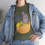 Pero no solo es bonita; está hecha para aguantar el ritmo. El algodón de peso medio asegura que puedas usarla todo el año, manteniéndote fresco cuando hace calor y abrigado en días más frescos. La costura tubular significa que no hay costuras laterales, lo que reduce residuos y da un ajuste más suave. La gola con cinta en los hombros evita que se deforme, incluso después de muchos lavados. Las estampas con técnicas DTF y DTG garantizan que el diseño se vea nítido y vibrante, como un dibujo recién hecho. Además, es Oeko-Tex certificada y con algodón de origen ético, para que te sientas bien por dentro y por fuera.