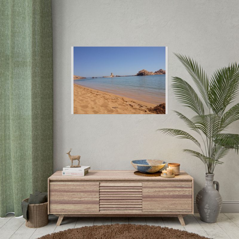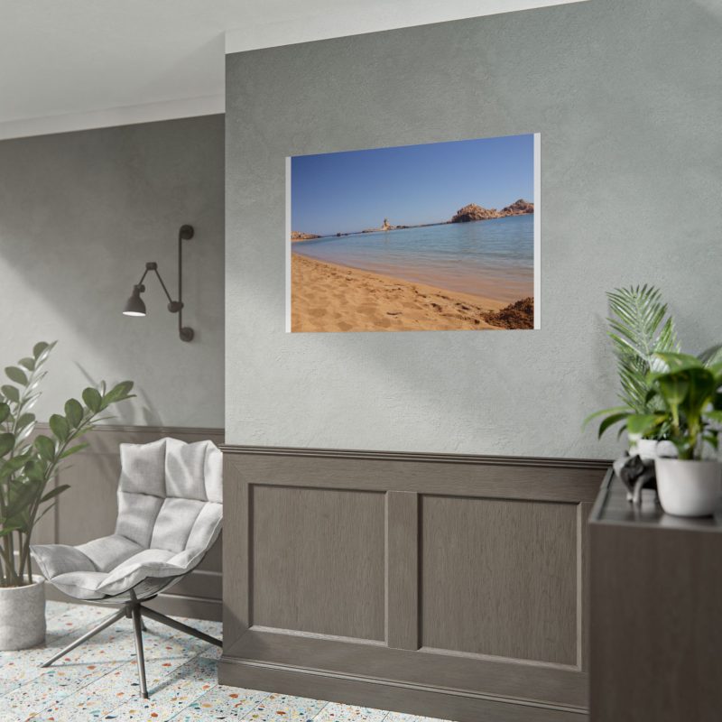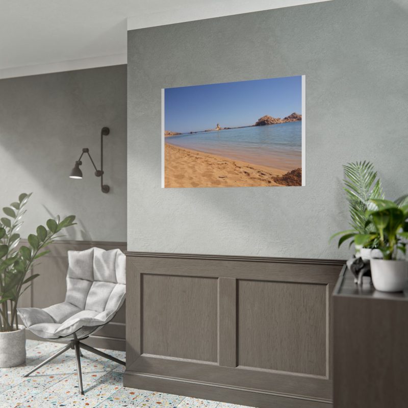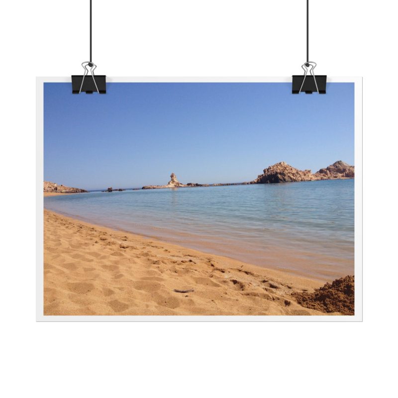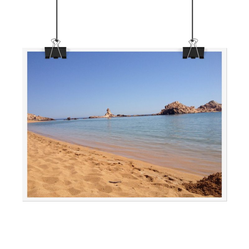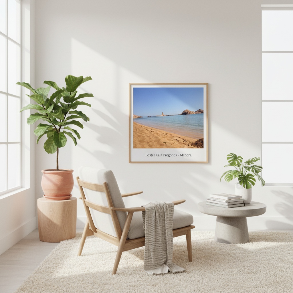 ¡Hola, buen rollo costero! Este póster de Cala Pregonda no es solo una foto, es una inyección directa de vibraciones Menorca. Cada vez que lo miras, te transporta a esa arena dorada y a ese mar turquesa que parece de cristal. Es tu dosis diaria de paz y energía positiva, perfecta para alegrar cualquier rincón de tu casa.