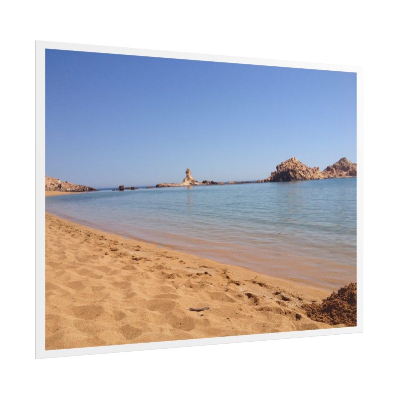Llega enrollado y superprotegido para que lo recibas en perfectas condiciones. Solo tienes que enmarcarlo y… ¡listo! La impresión Giclée es de archivo, lo que significa que esos azules y dorados tan increíbles no se van a apagar con el tiempo. Es un recuerdo que perdura, igual que las ganas de volver a Menorca.