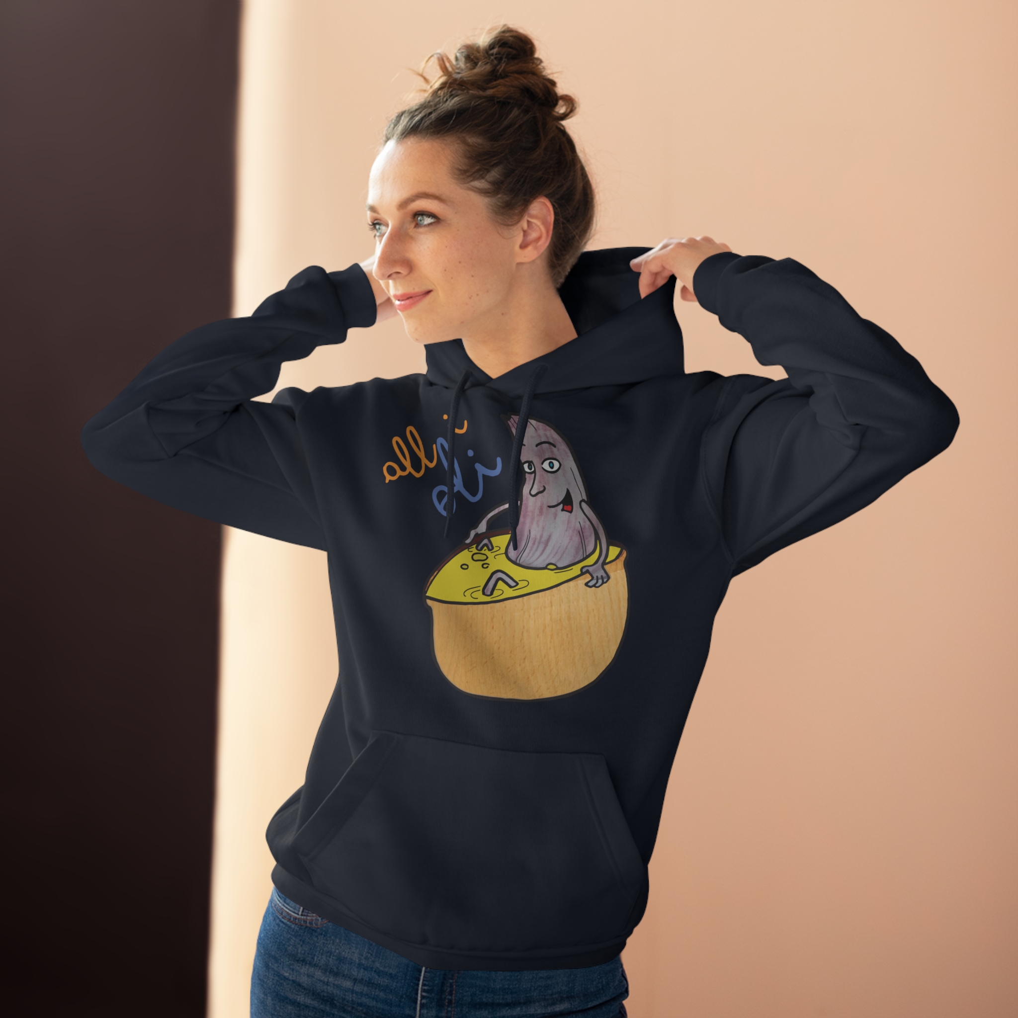 ¿Buscas un toque de alegría para tu día a día? Esta sudadera unisex All i Oli es tu nueva mejor amiga. Con su diseño gracioso de un hueso de aguacate tímido asomando de un limón, es como llevar un chiste privado que te hará reír por dentro. Su suavidad es un abrazo instantáneo, perfecto para enrollarte en el sofá o salir a por un café. ¡Te va a encantar desde el primer momento!