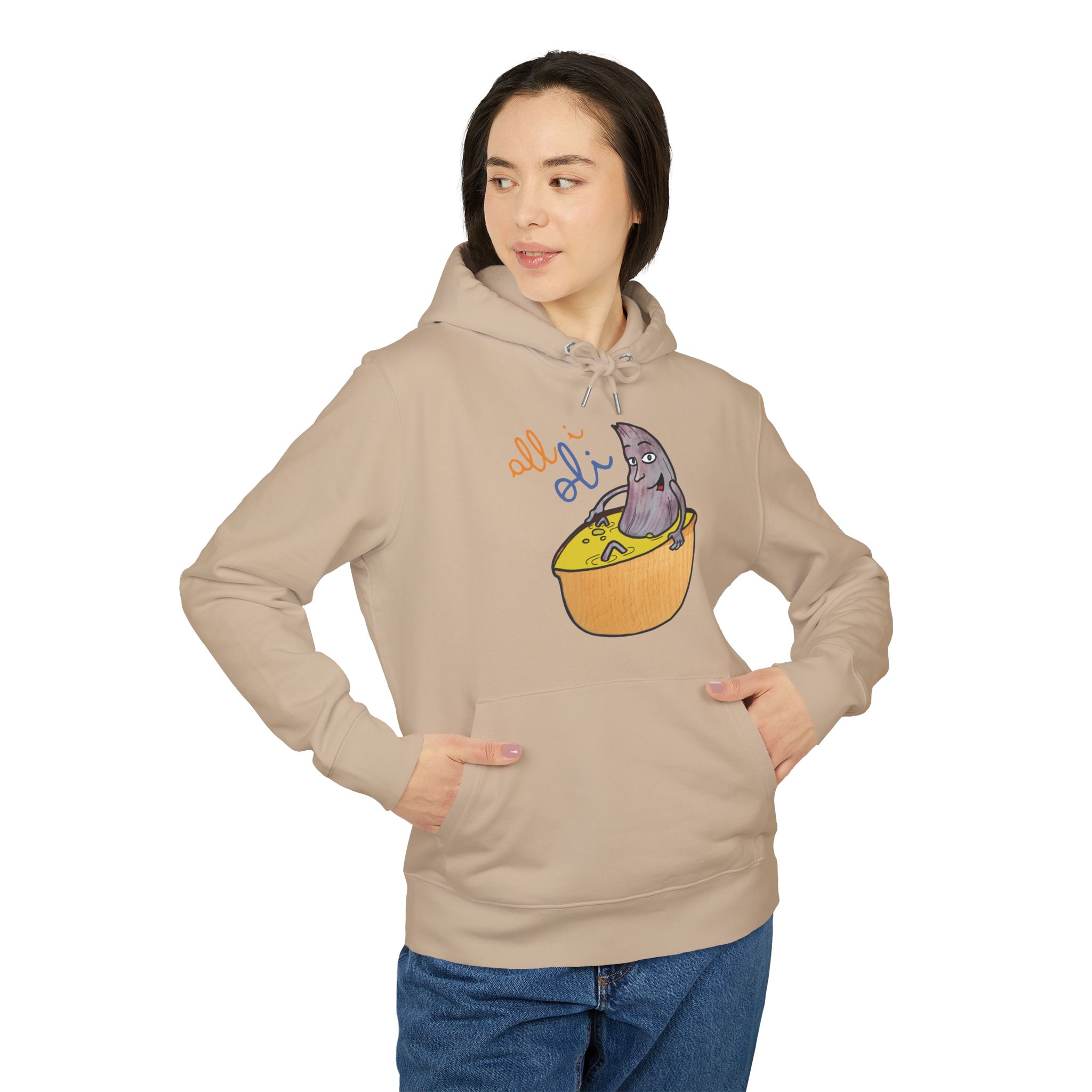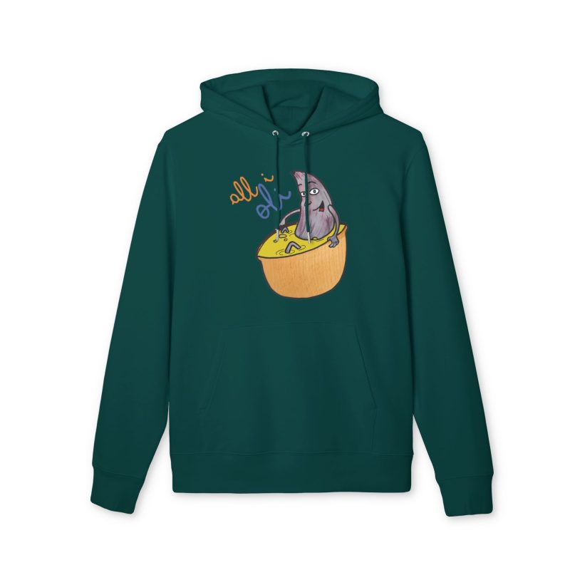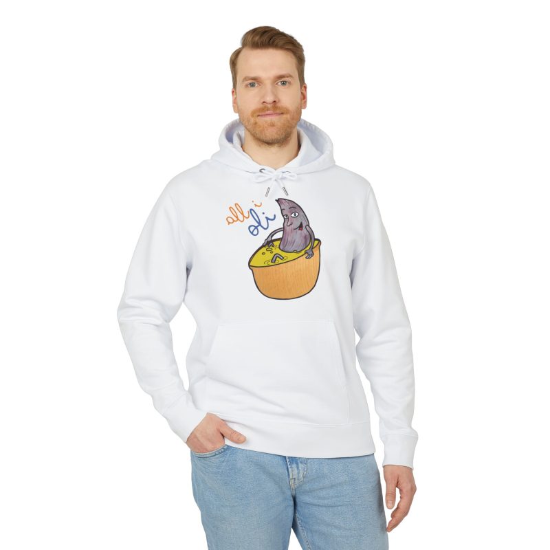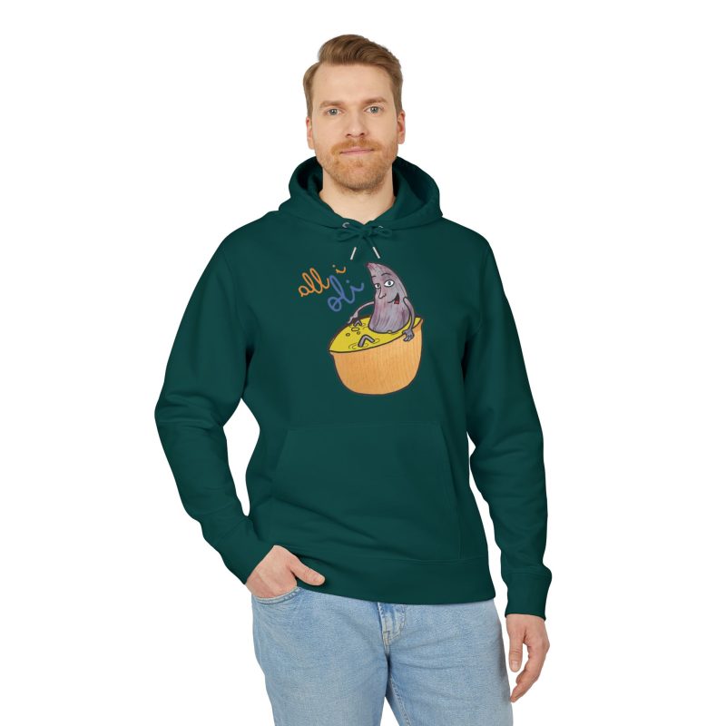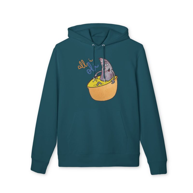 ¡Hola comodidad! Esta sudadera con capucha es como recibir un abrazo cálido en un día fresco. Su algodón orgánico cepillado es ultra suave desde el primer momento y su corte unisex favorece a todo el mundo. Perfecta para tus mañanas perezosas, un paseo por la ciudad o esas sesiones de brainstorming creativo. Con un diseño único de un tiburón asomando de un bol, llevarás contigo una sonrisa y alegrarás el día a los demás sin decir una palabra.