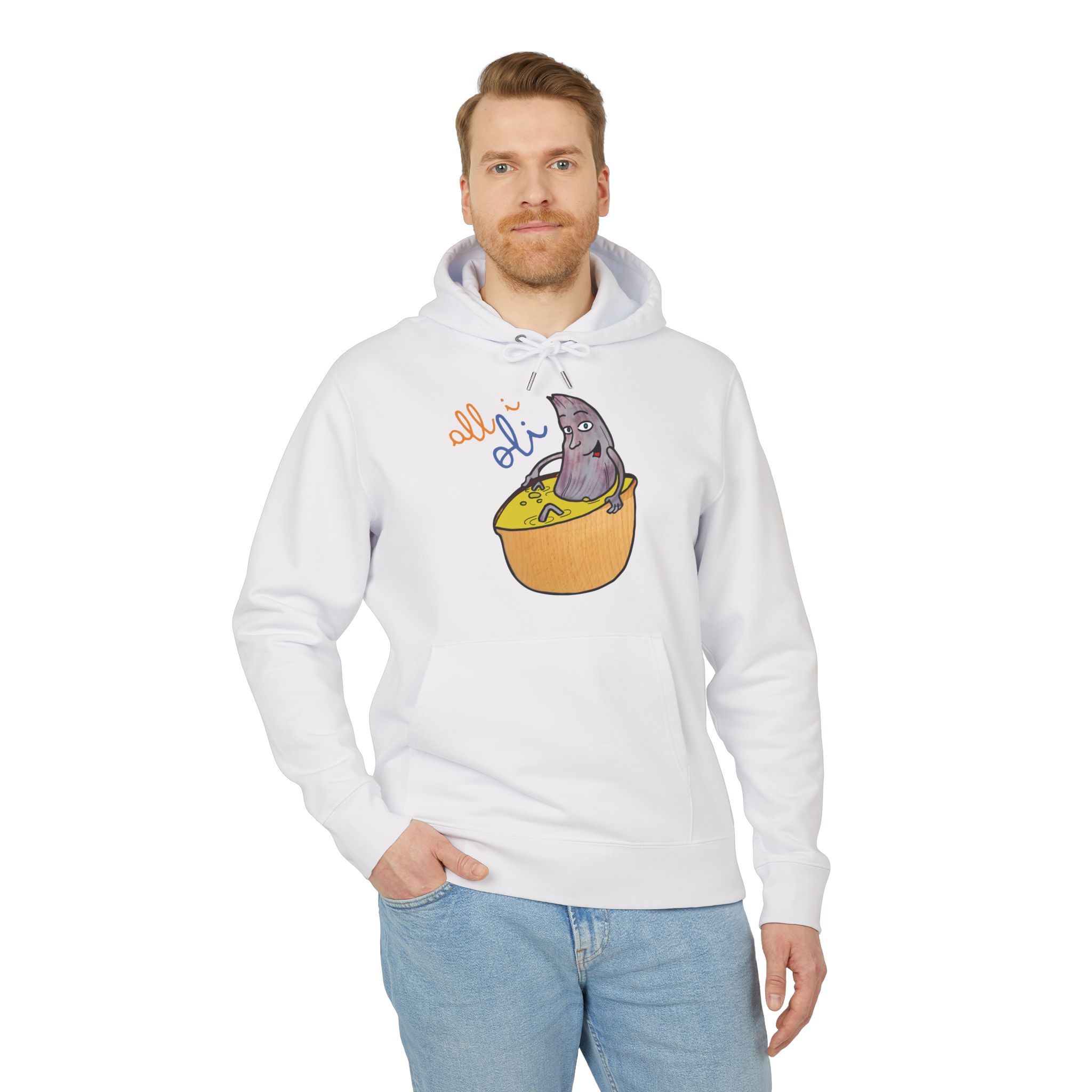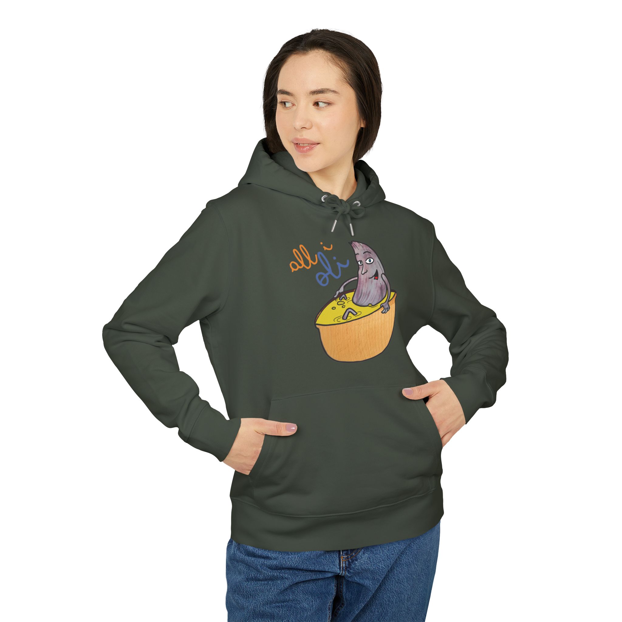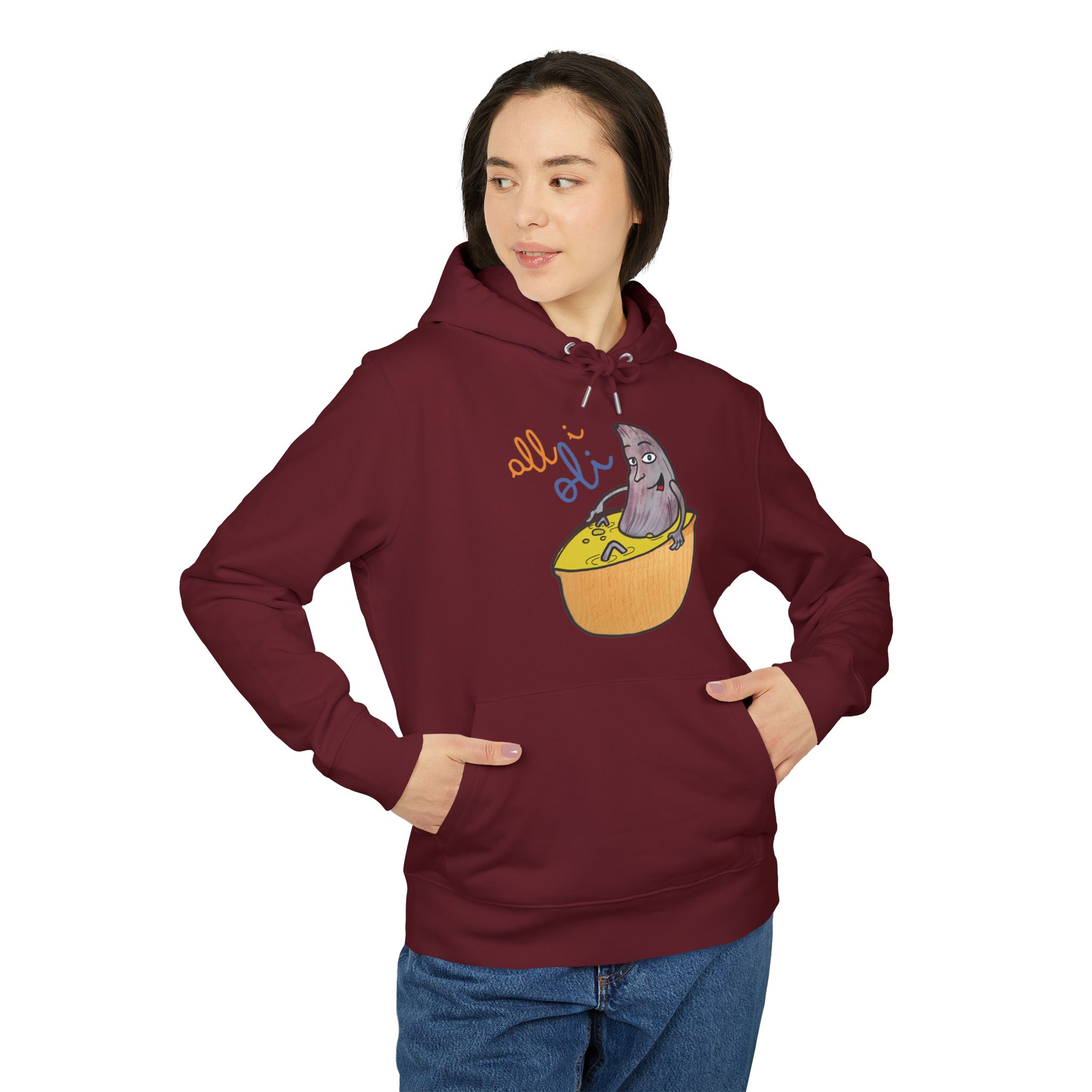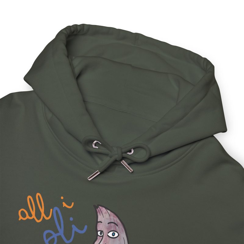 ¡Hola comodidad! Esta sudadera con capucha es como recibir un abrazo cálido en un día fresco. Su algodón orgánico cepillado es ultra suave desde el primer momento y su corte unisex favorece a todo el mundo. Perfecta para tus mañanas perezosas, un paseo por la ciudad o esas sesiones de brainstorming creativo. Con un diseño único de un tiburón asomando de un bol, llevarás contigo una sonrisa y alegrarás el día a los demás sin decir una palabra.