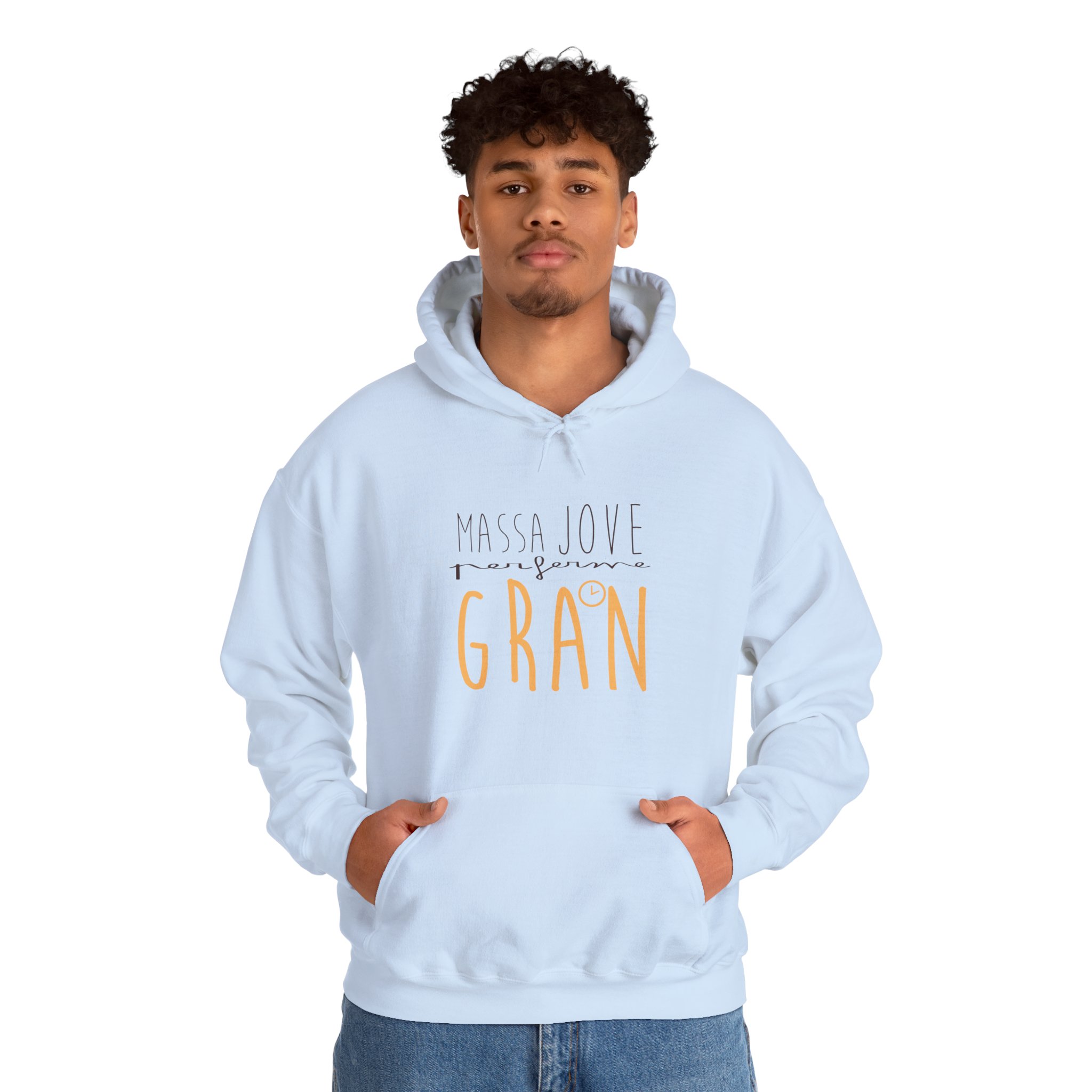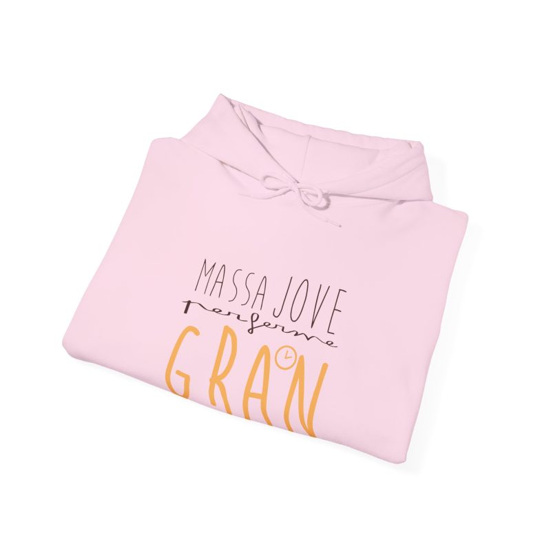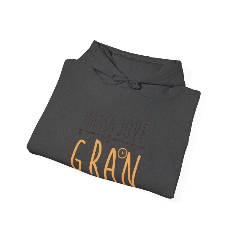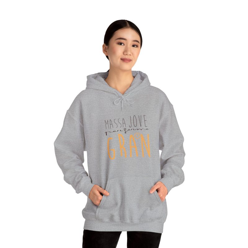 ¡Esta sudadera es como un abrazo cálido en un día fresco! Su tejido Heavy Blend™ de algodón y poliéster es super suave, duradero y perfecto para ponértelo y olvidarte de que lo llevas. Ideal para capas en días variables o para arroparte en casa. Su mensaje ‘Massa Jove per ferme GRAN’, con ese estilo de letra manual, le da un toque personal y lleno de buena energía que te va a encantar.
