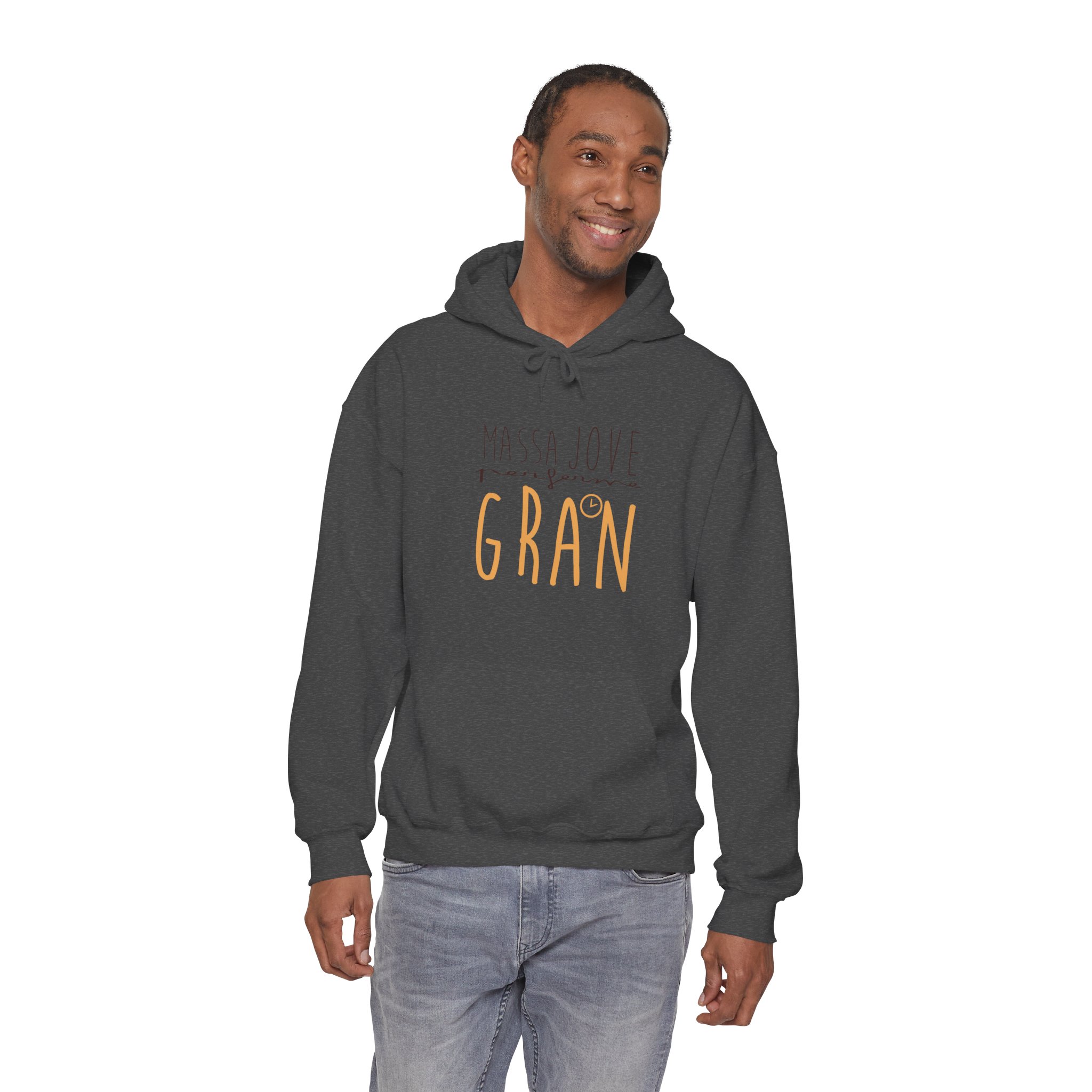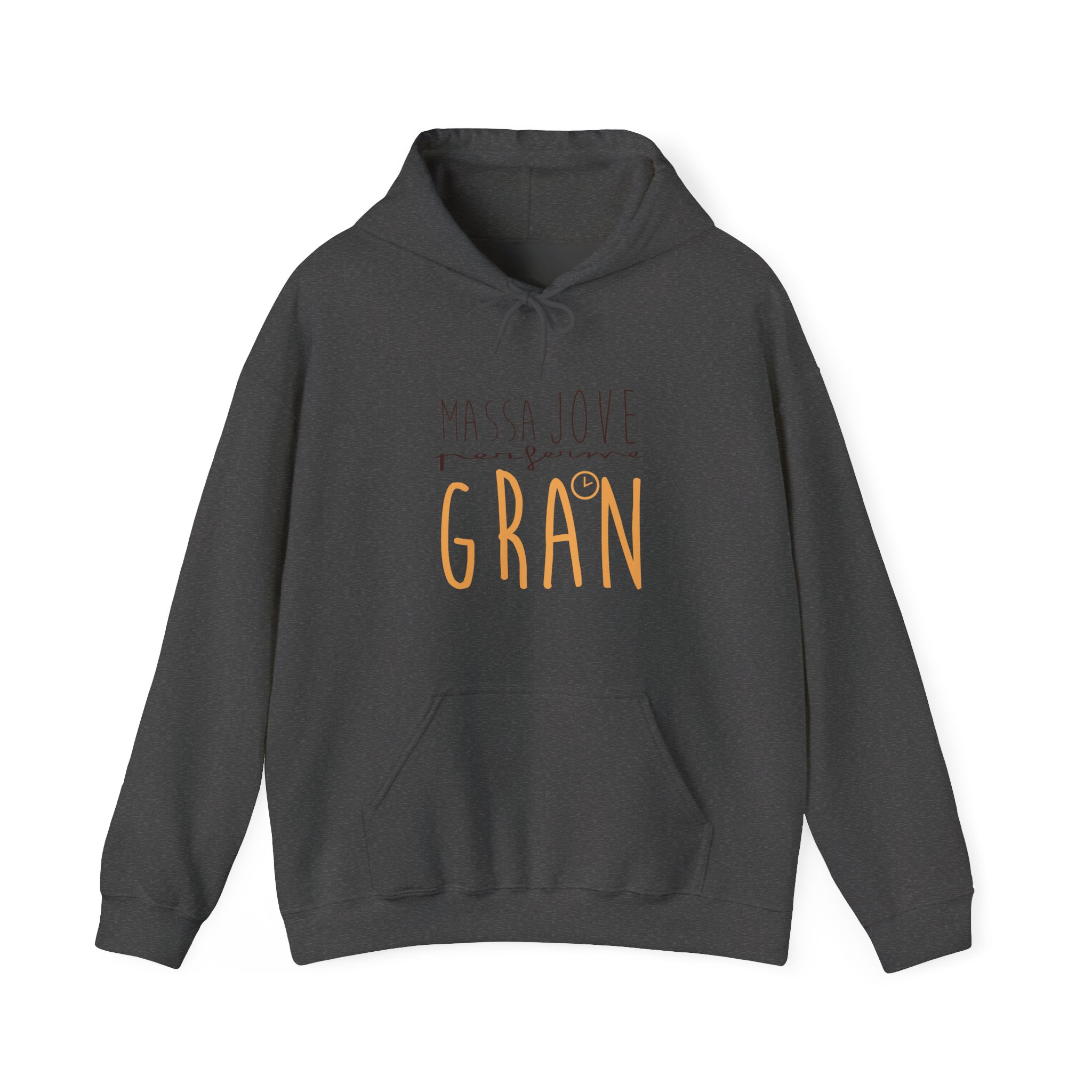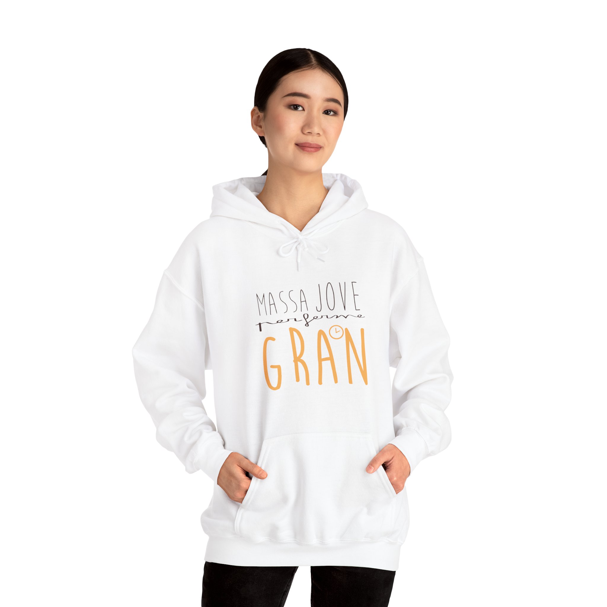 ¡Esta sudadera es como un abrazo cálido en un día fresco! Su tejido Heavy Blend™ de algodón y poliéster es super suave, duradero y perfecto para ponértelo y olvidarte de que lo llevas. Ideal para capas en días variables o para arroparte en casa. Su mensaje ‘Massa Jove per ferme GRAN’, con ese estilo de letra manual, le da un toque personal y lleno de buena energía que te va a encantar.