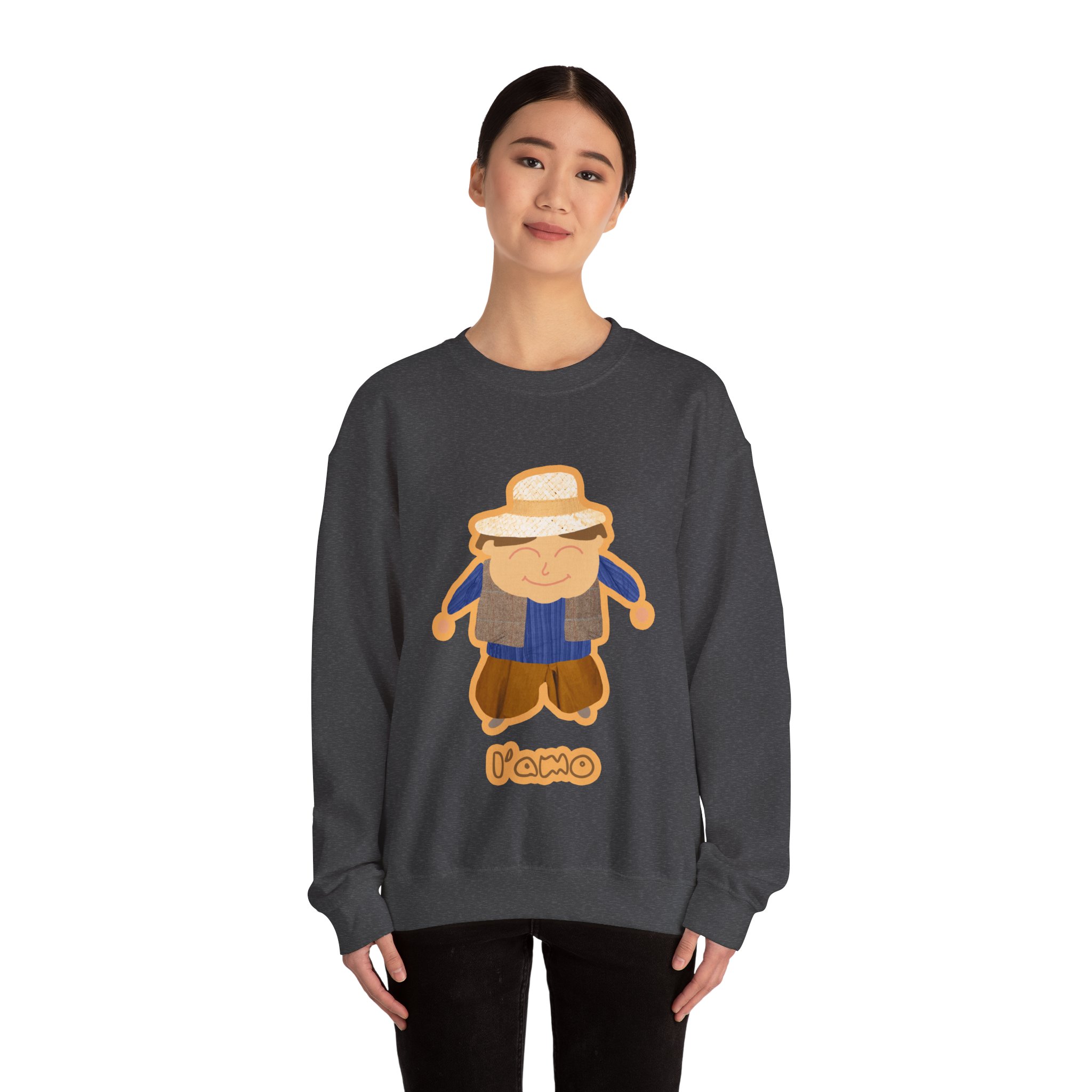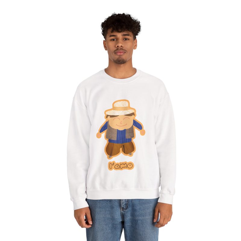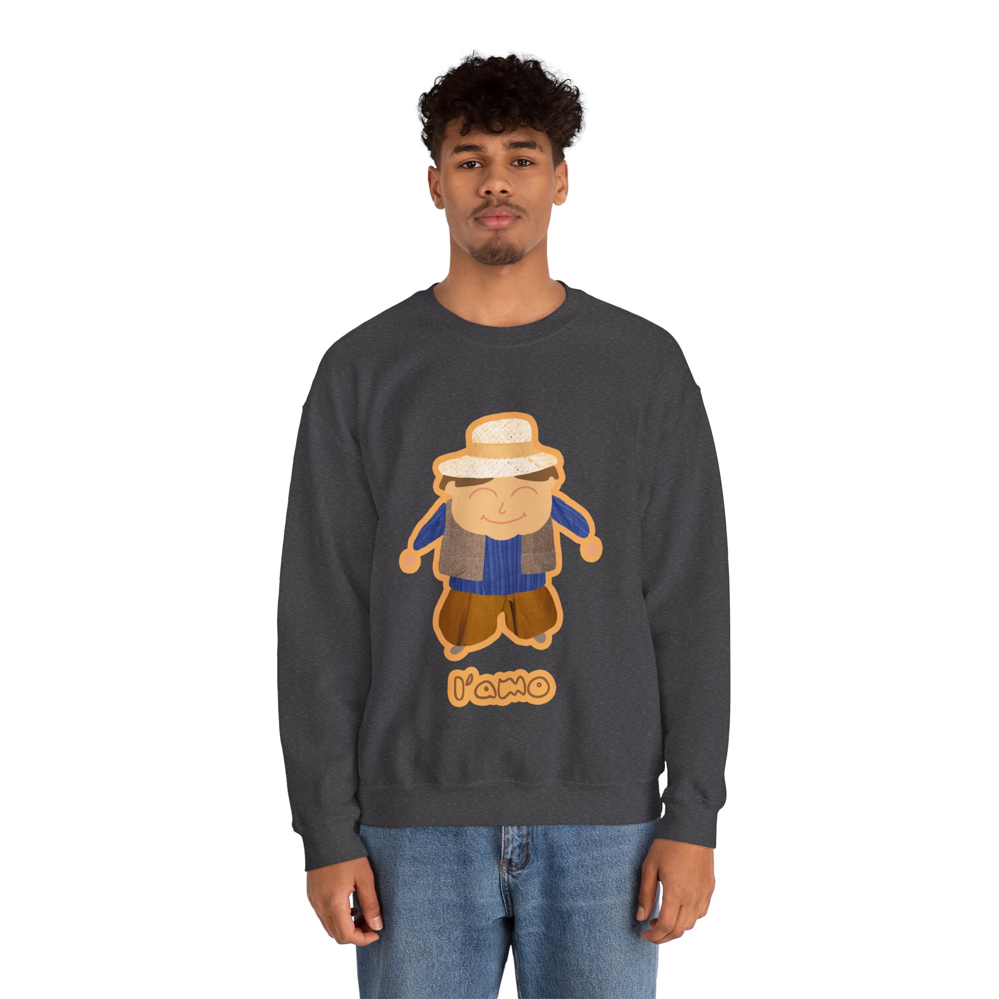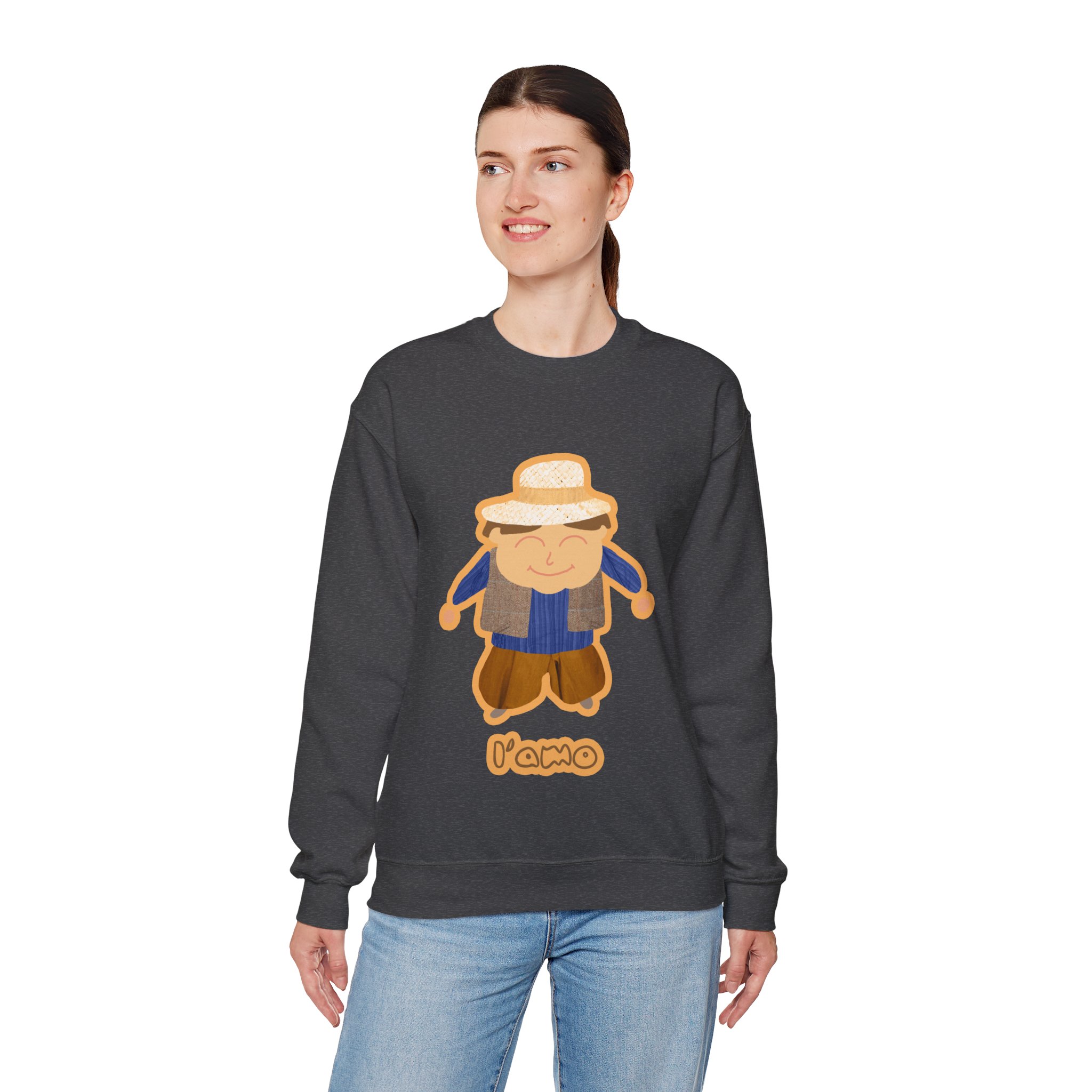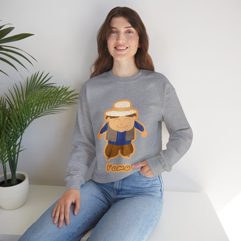 ¡Hola, comodidad! Esta sudadera unisex Heavy Blend™ es tu nuevo mejor amigo para el día a día. Con un diseño súper suave y un peso medio perfecto, es la capa ideal para cualquier aventura, ya sea un paseo por la ciudad o un plan relajado en casa. La llevas y sientes al instante ese abrazo acogedor que solo el algodón ético de EE.UU. puede dar. Y mira ese detalle: nuestro amiguito sonriente con sombrero de paja, bordado e impreso con unos tonos tierra que dan muchísima vida.