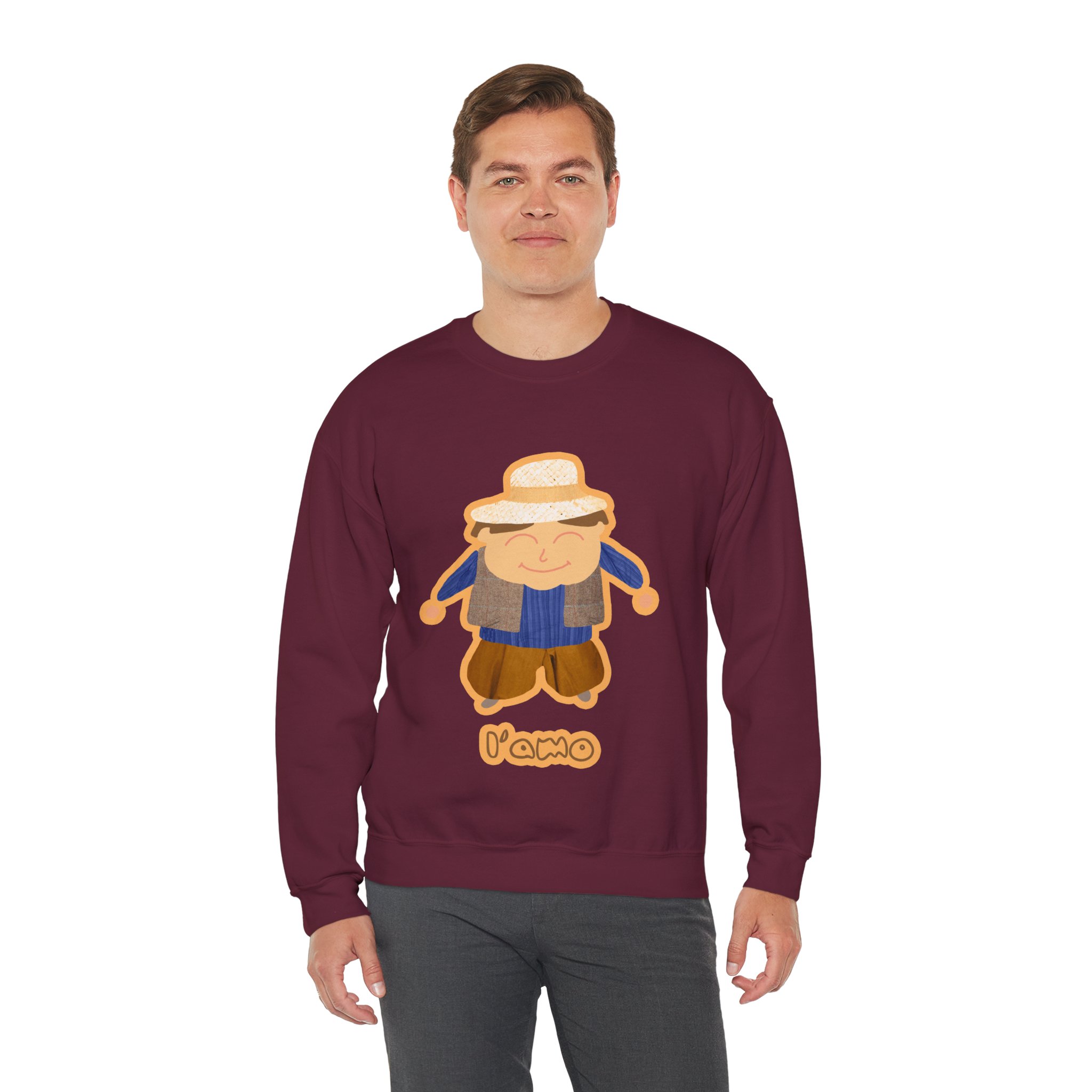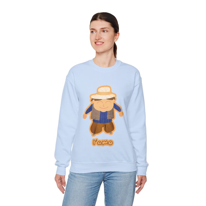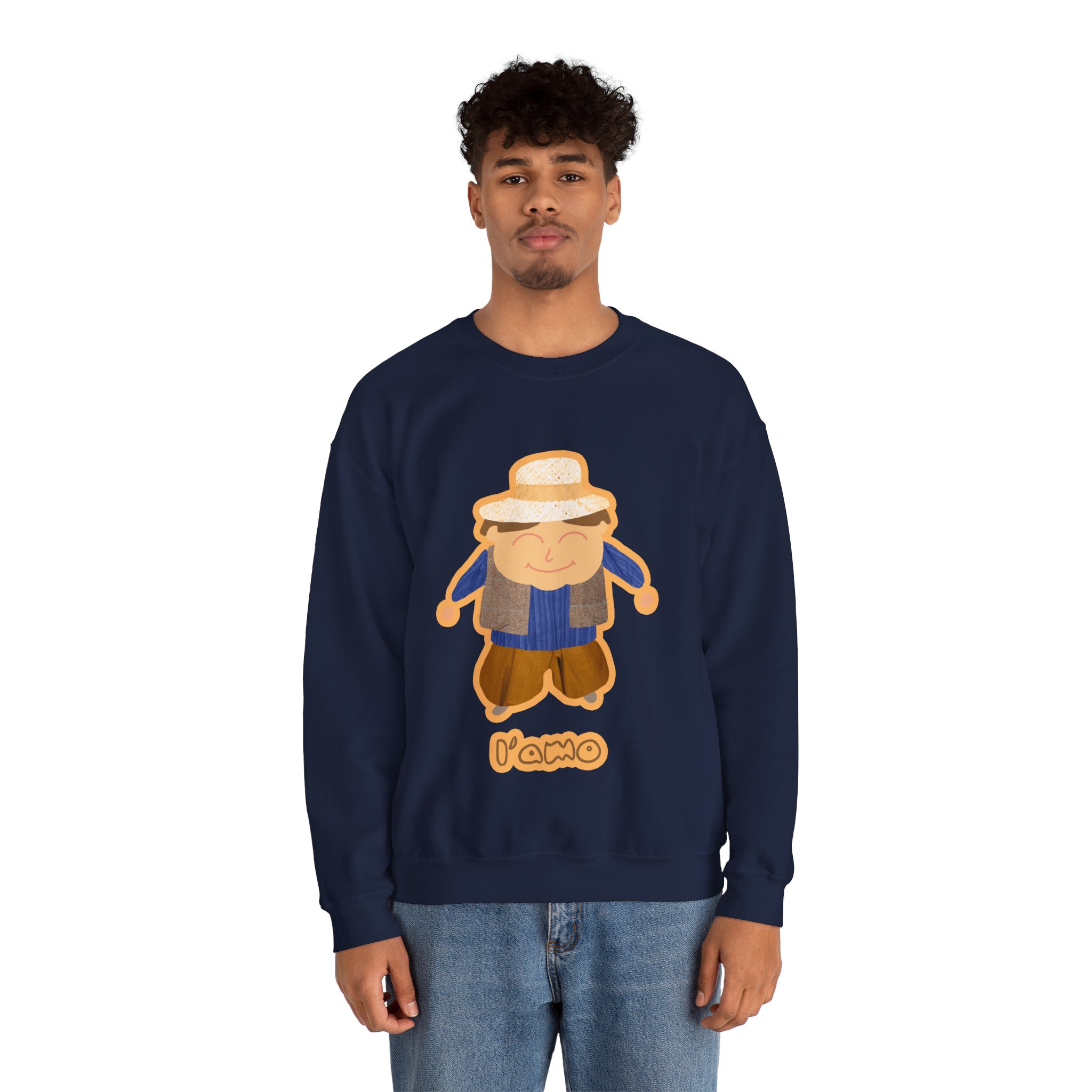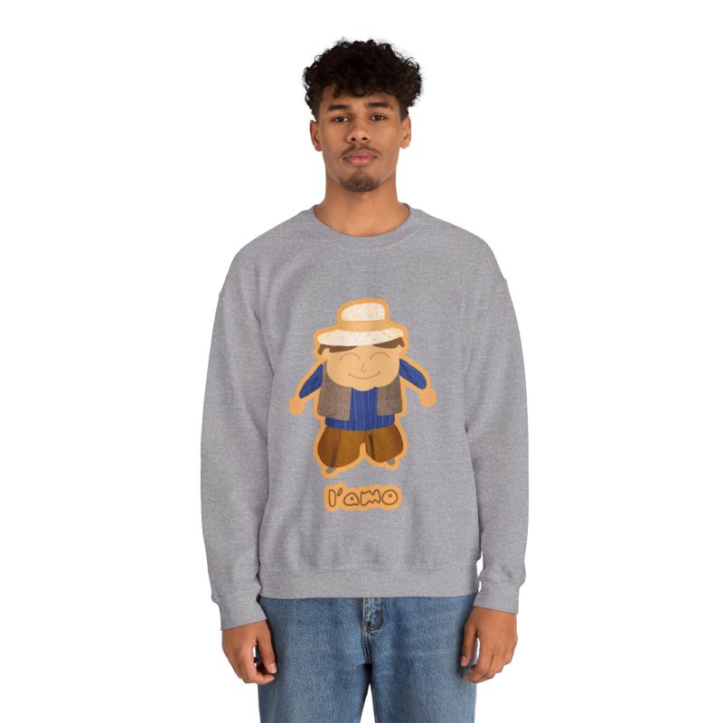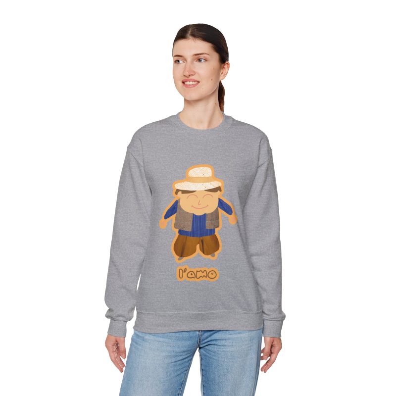 ¡Hola, comodidad! Esta sudadera unisex Heavy Blend™ es tu nuevo mejor amigo para el día a día. Con un diseño súper suave y un peso medio perfecto, es la capa ideal para cualquier aventura, ya sea un paseo por la ciudad o un plan relajado en casa. La llevas y sientes al instante ese abrazo acogedor que solo el algodón ético de EE.UU. puede dar. Y mira ese detalle: nuestro amiguito sonriente con sombrero de paja, bordado e impreso con unos tonos tierra que dan muchísima vida.