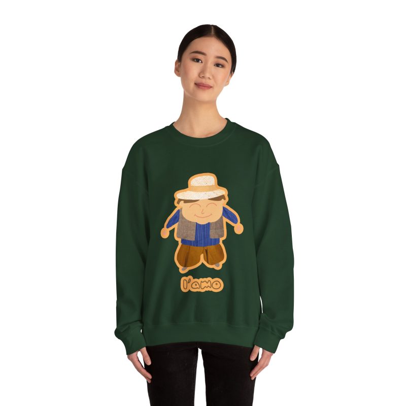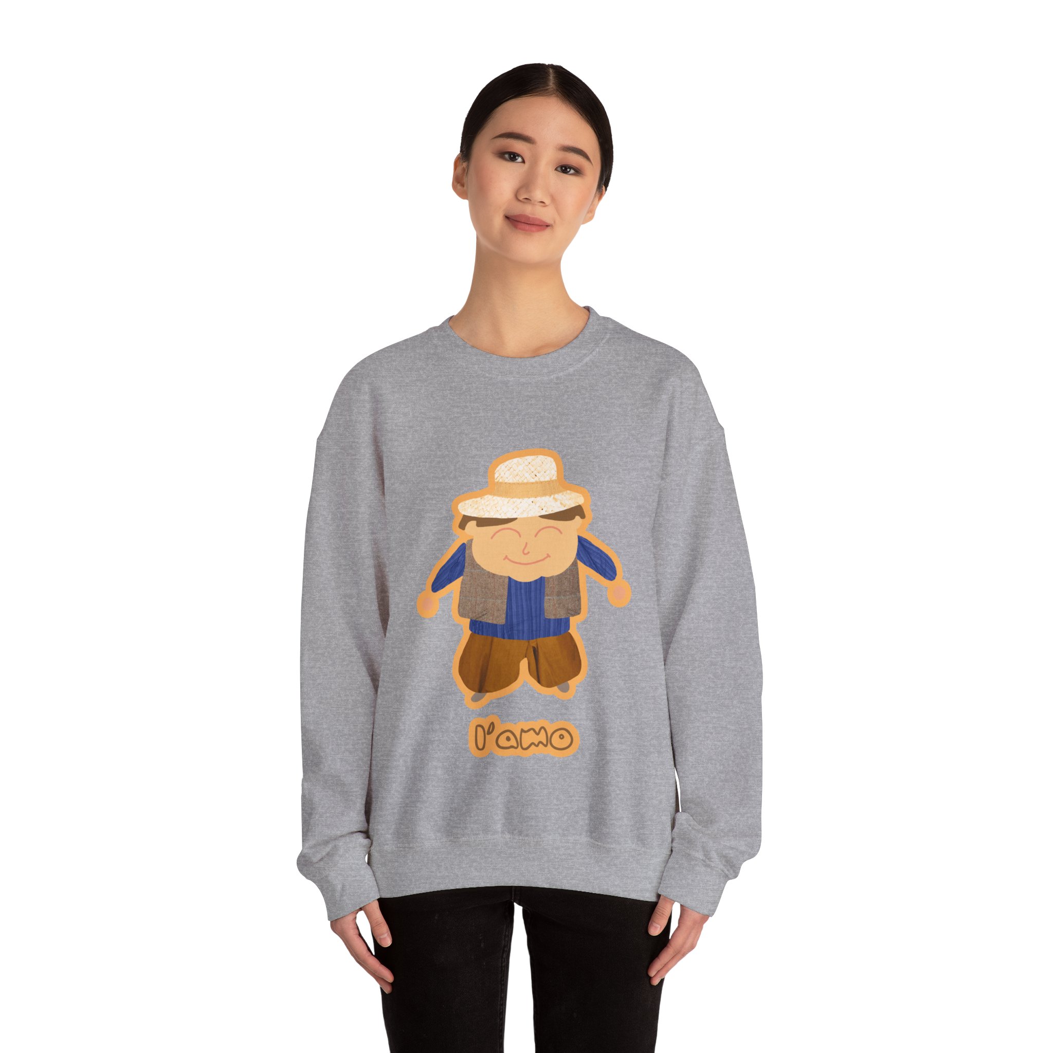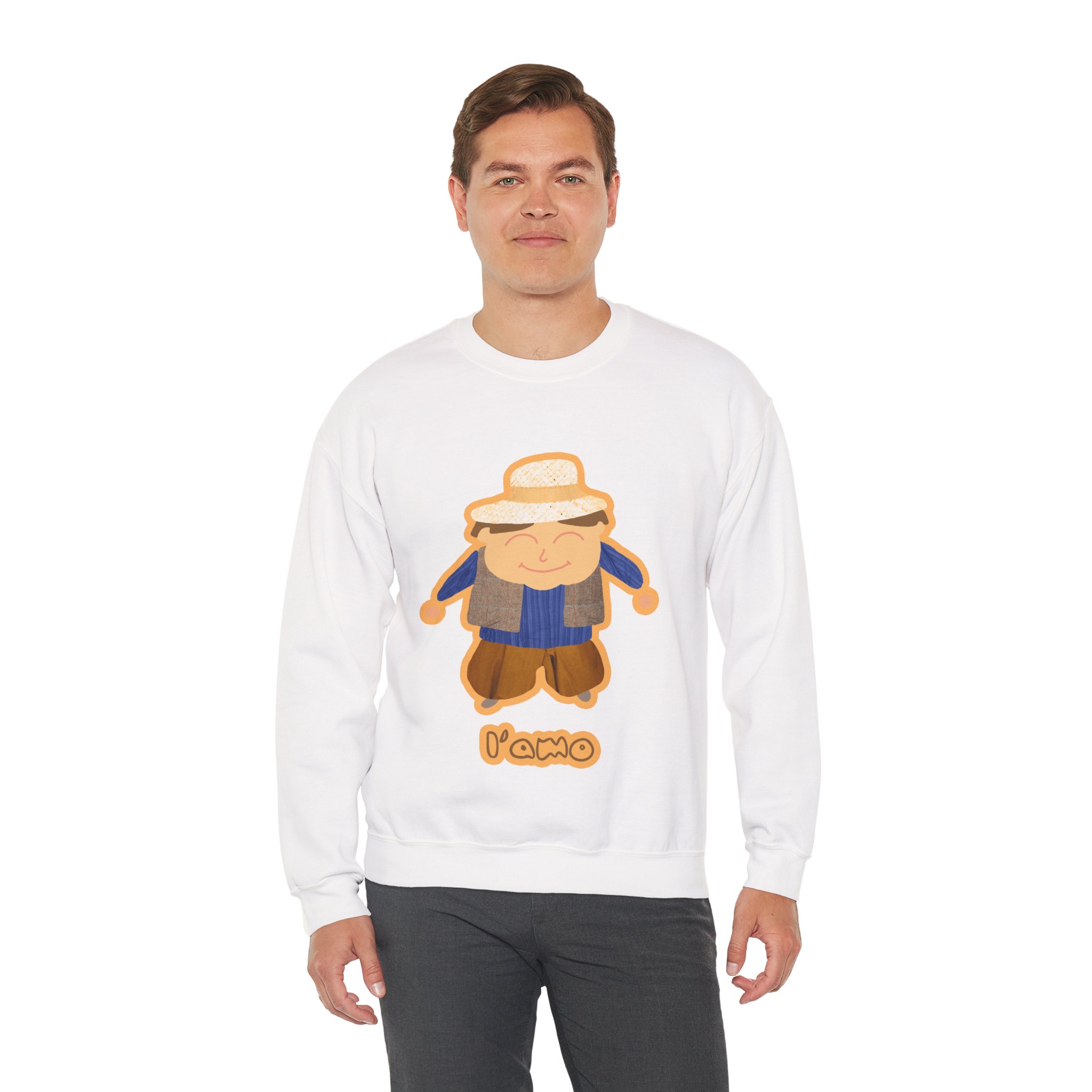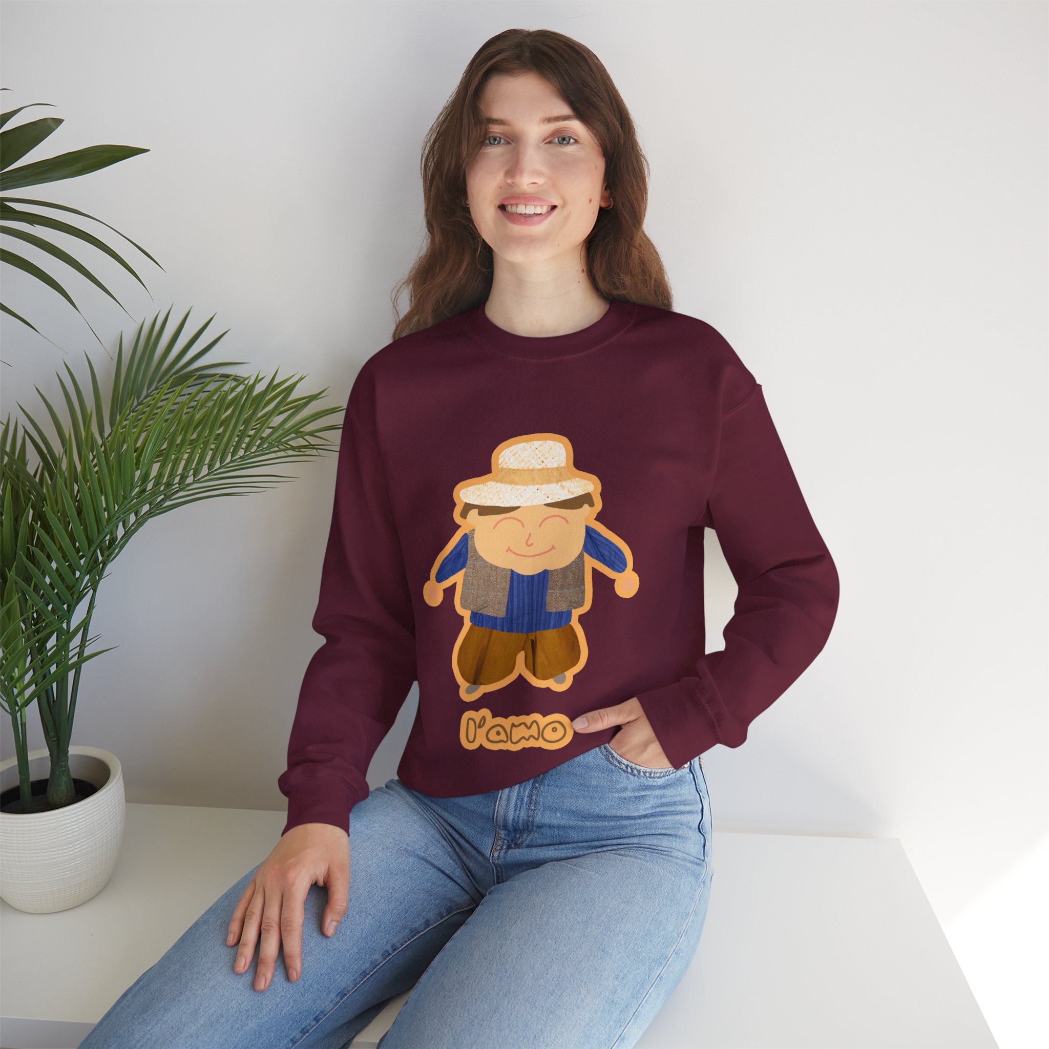 ¡Hola, comodidad! Esta sudadera unisex Heavy Blend™ es tu nuevo mejor amigo para el día a día. Con un diseño súper suave y un peso medio perfecto, es la capa ideal para cualquier aventura, ya sea un paseo por la ciudad o un plan relajado en casa. La llevas y sientes al instante ese abrazo acogedor que solo el algodón ético de EE.UU. puede dar. Y mira ese detalle: nuestro amiguito sonriente con sombrero de paja, bordado e impreso con unos tonos tierra que dan muchísima vida.