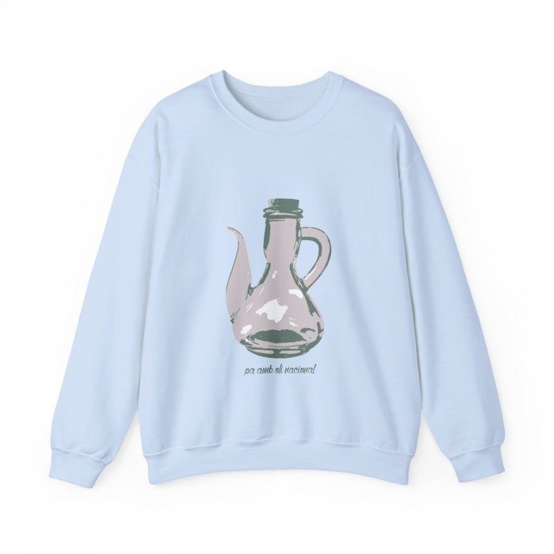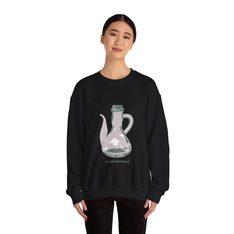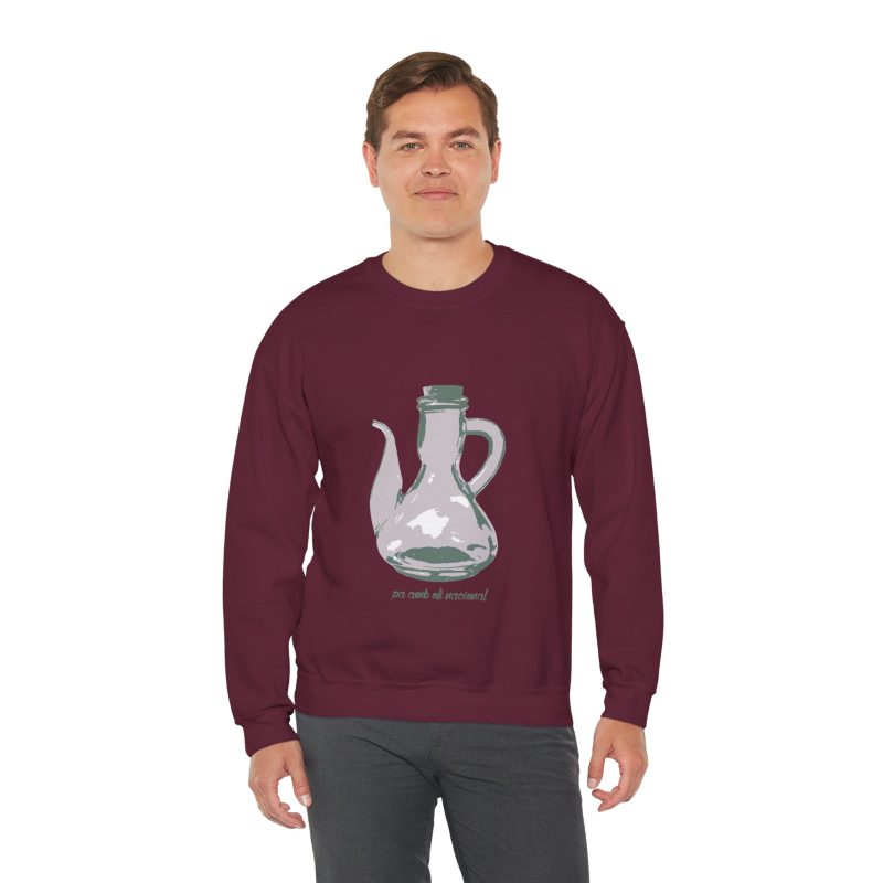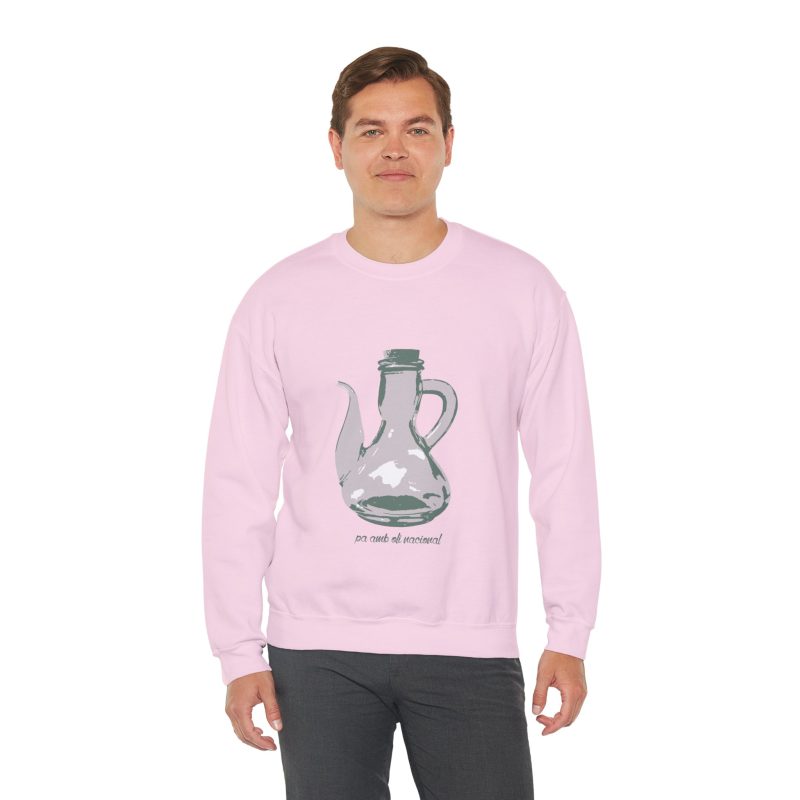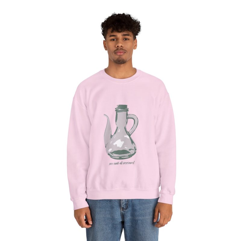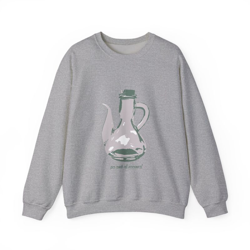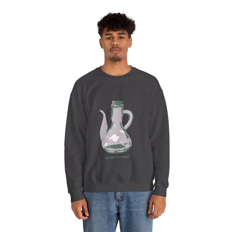 ¡Esta sudadera es como un abrazo de esos que te cargan las pilas! Con su mezcla Heavy Blend™ de algodón y poliéster, es supercómoda, calentita y aguanta un montón. Lleva estampado un dibujo único de una jarra de pa amb oli, hecho a mano, que le da un rollo vintage y artístico superchulo. Perfecta para un día fresco, ir a tomar algo o simplemente relajarte en casa como un rey.
