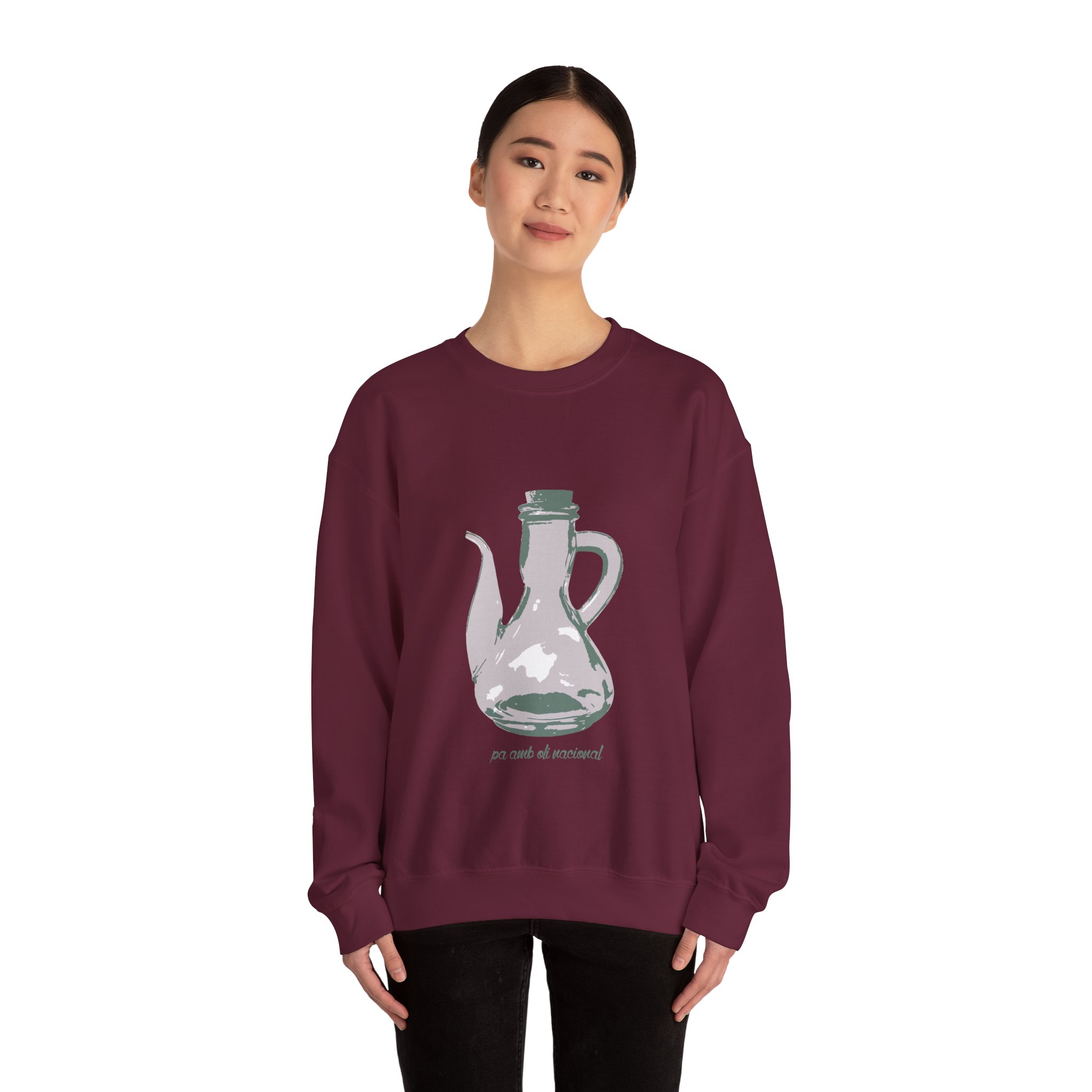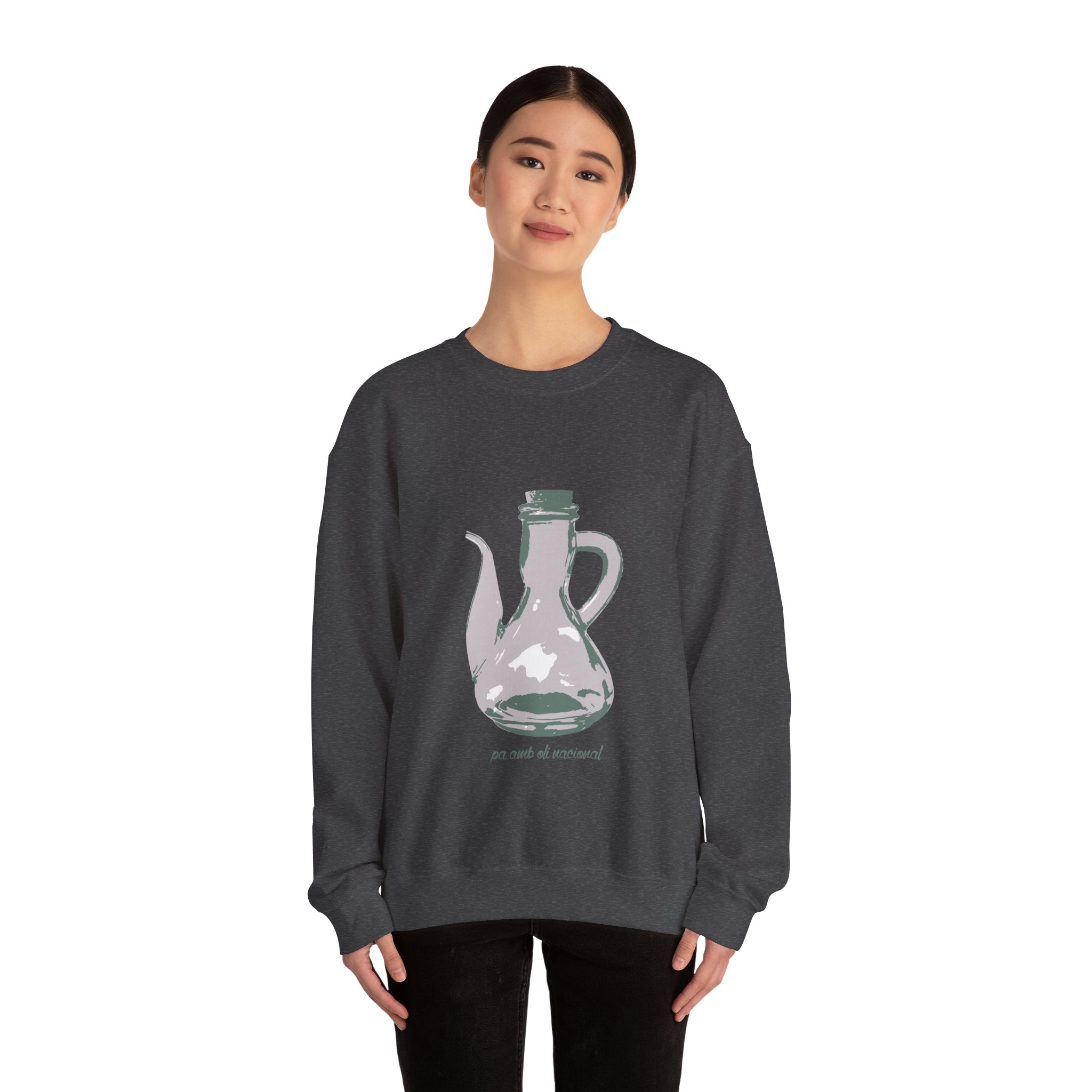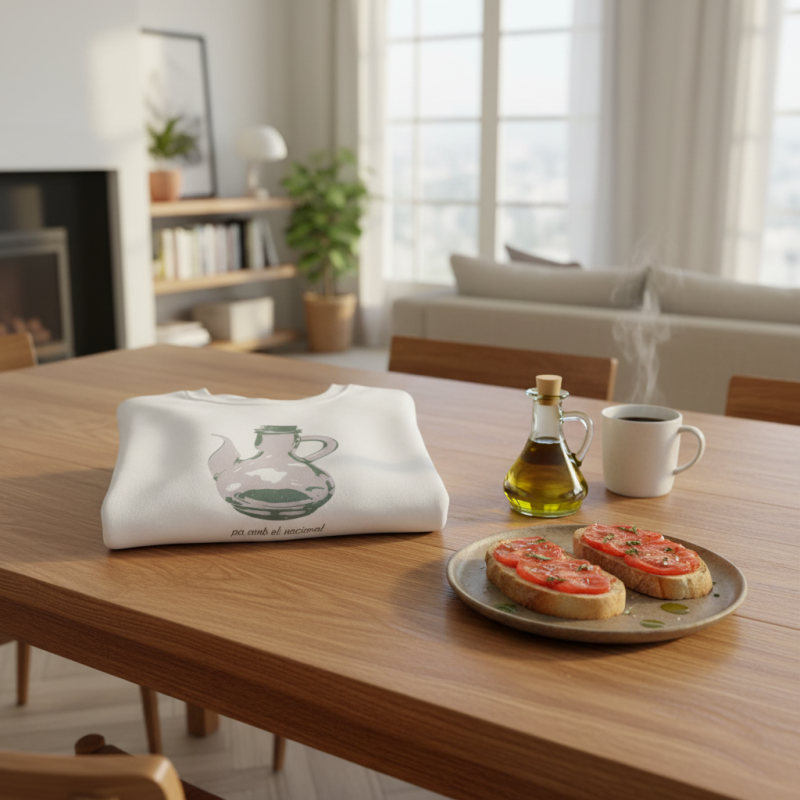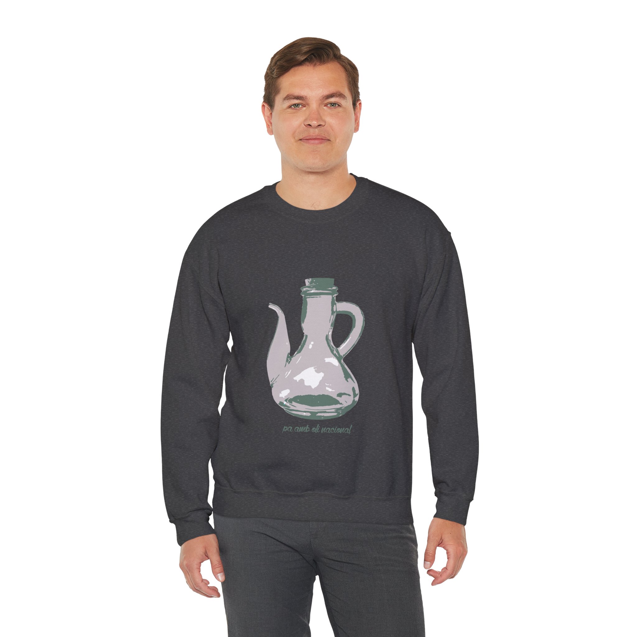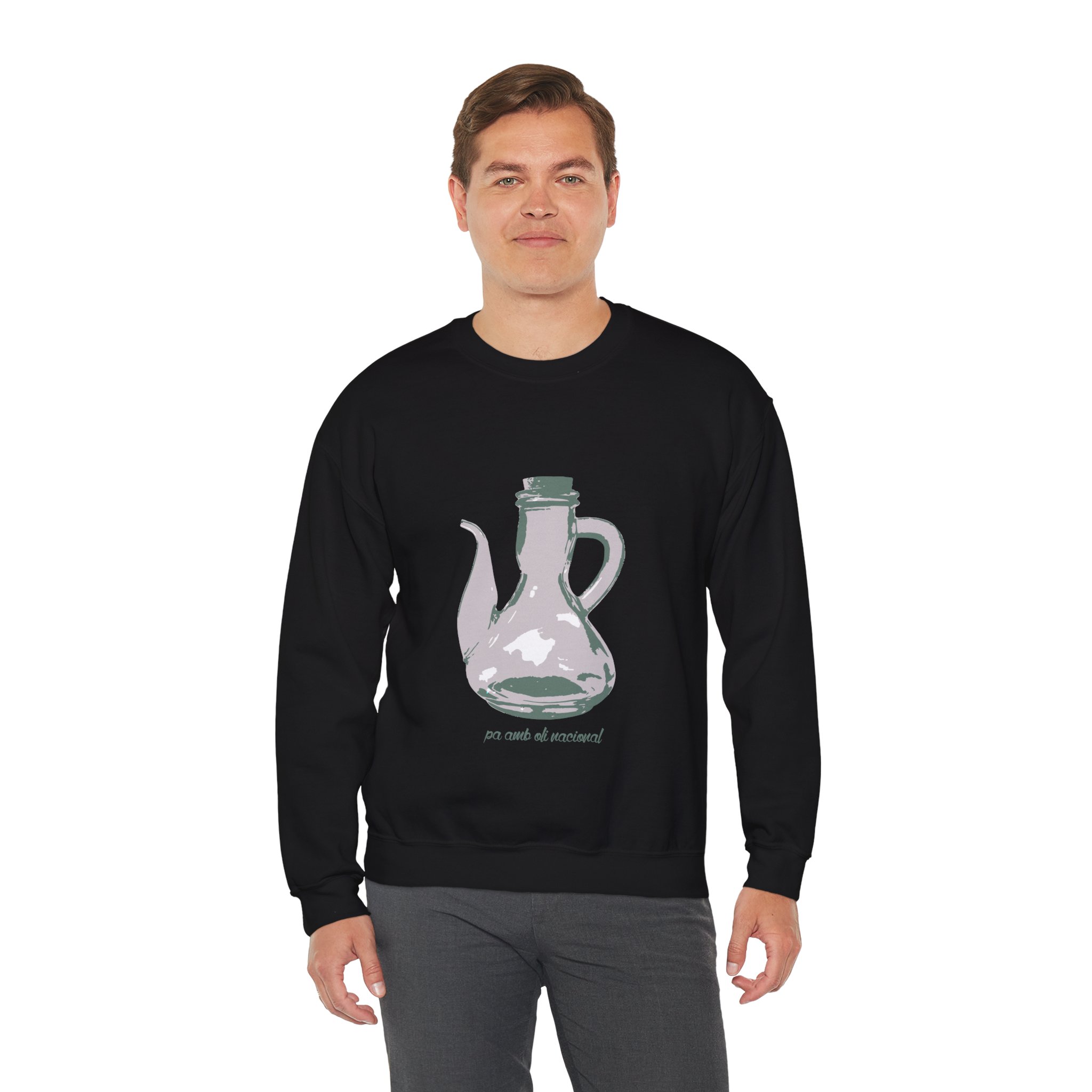 ¡Esta sudadera es como un abrazo de esos que te cargan las pilas! Con su mezcla Heavy Blend™ de algodón y poliéster, es supercómoda, calentita y aguanta un montón. Lleva estampado un dibujo único de una jarra de pa amb oli, hecho a mano, que le da un rollo vintage y artístico superchulo. Perfecta para un día fresco, ir a tomar algo o simplemente relajarte en casa como un rey.